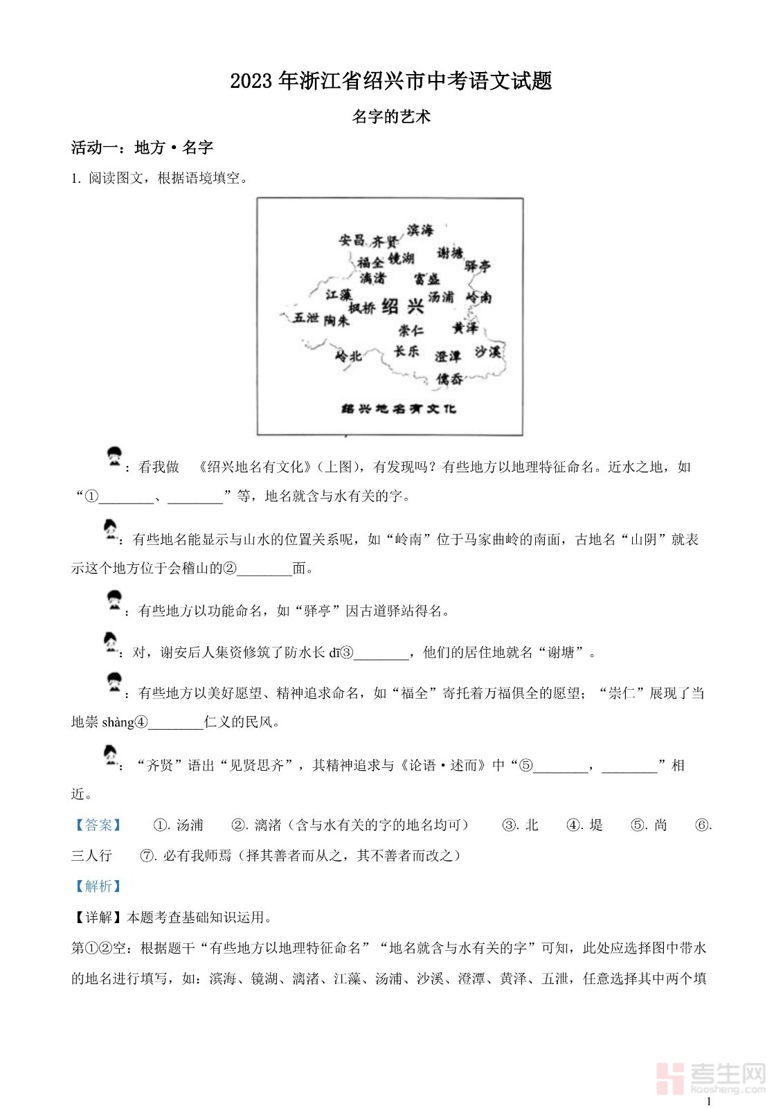 2023年浙江省绍兴市中考语文真题 (解析版)