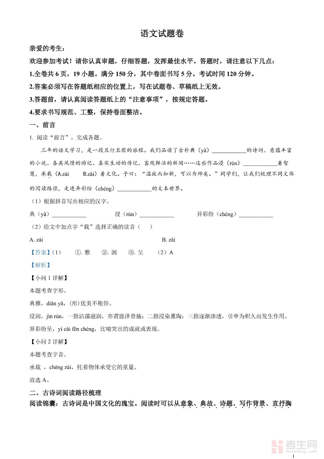 2023年中考语文真题