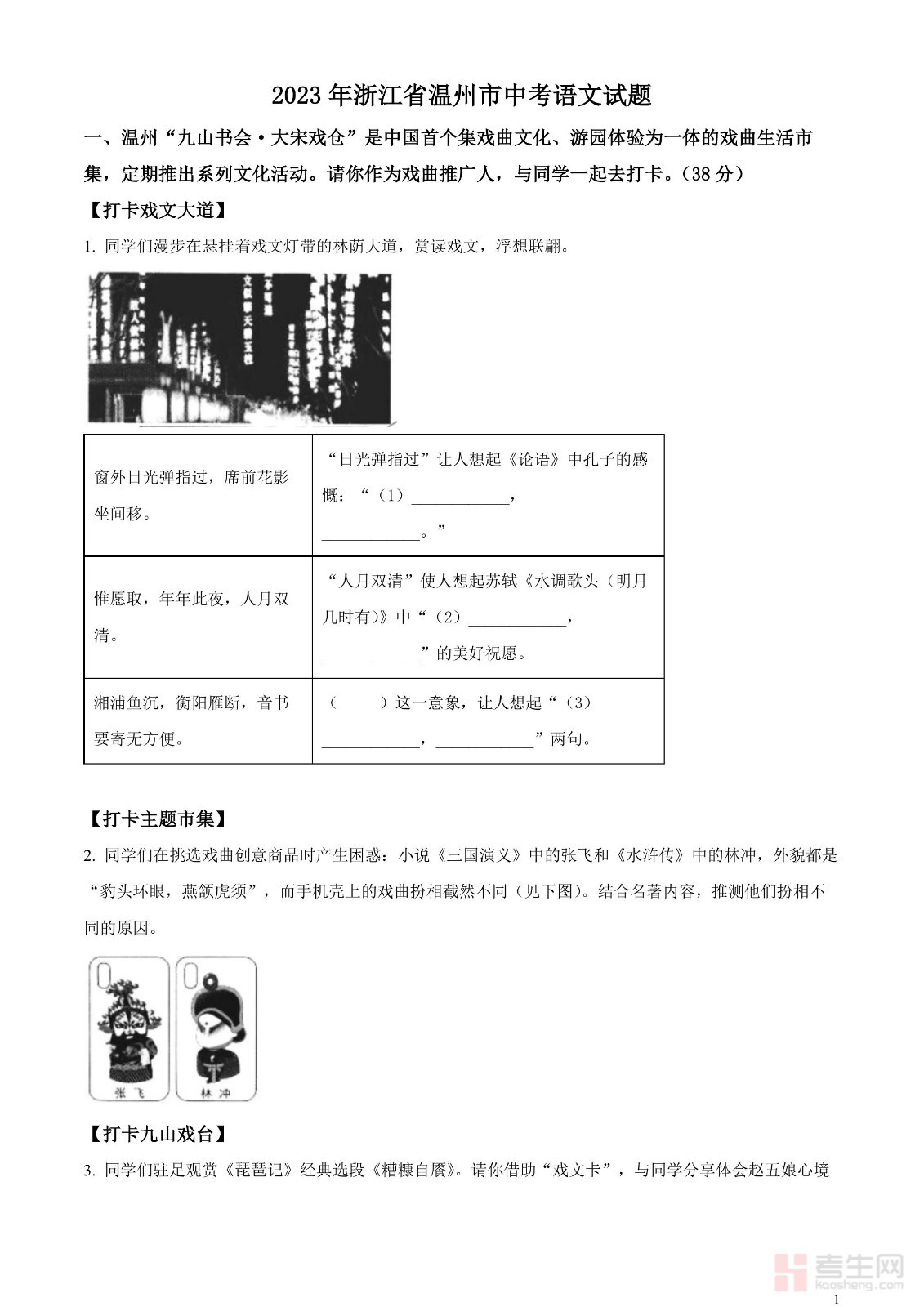 2023年浙江省温州市中考语文真题(原卷版)