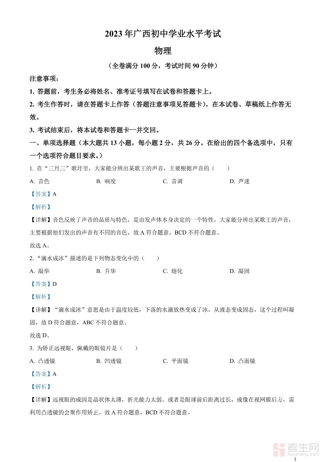 2023年广西中考物理试题(解析版)