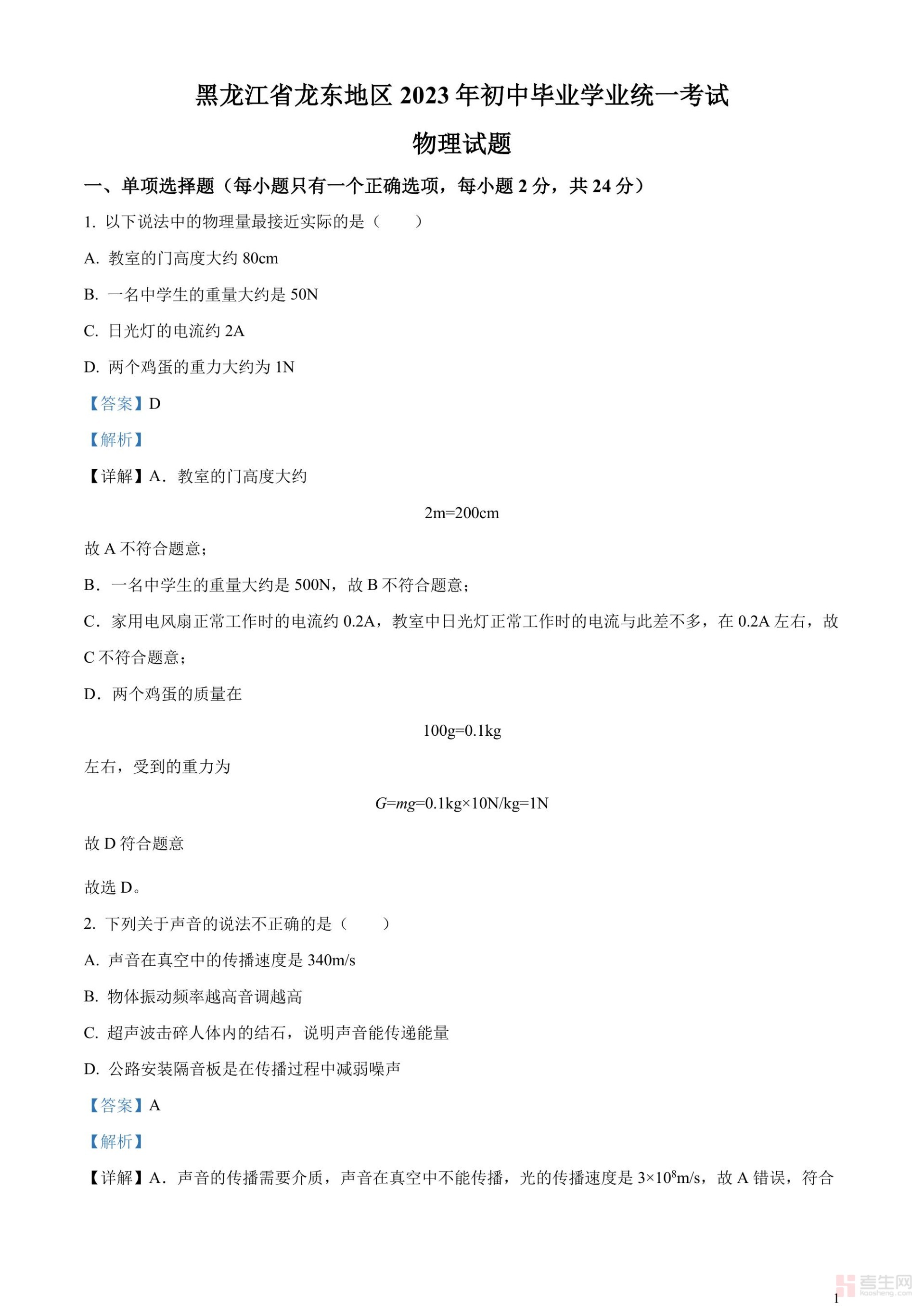 2023年黑龙江龙东地区中考物理试题(解析版)