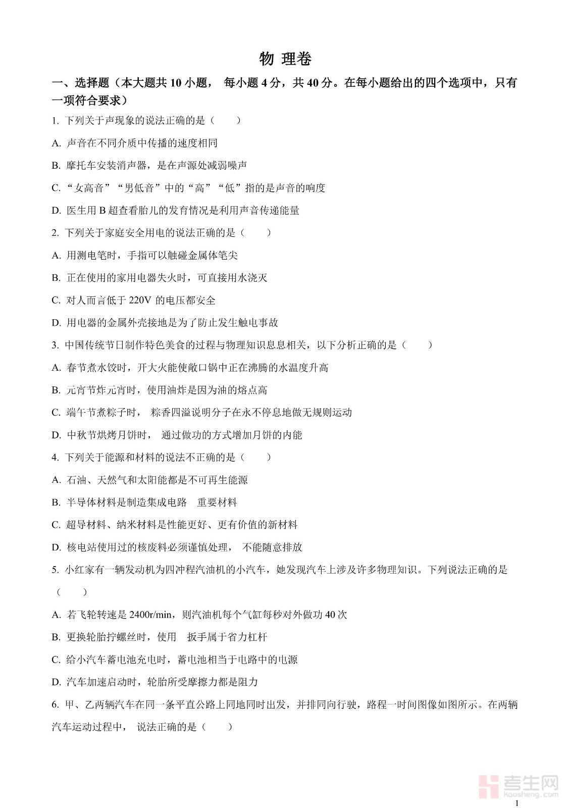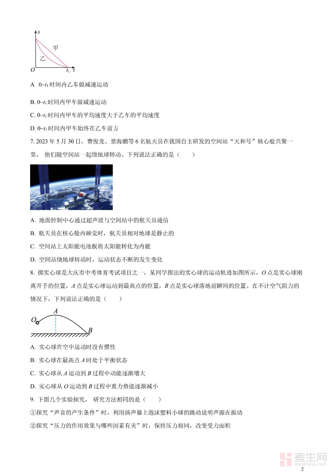 2023年黑龙江省大庆市中考物理试题(原卷版)