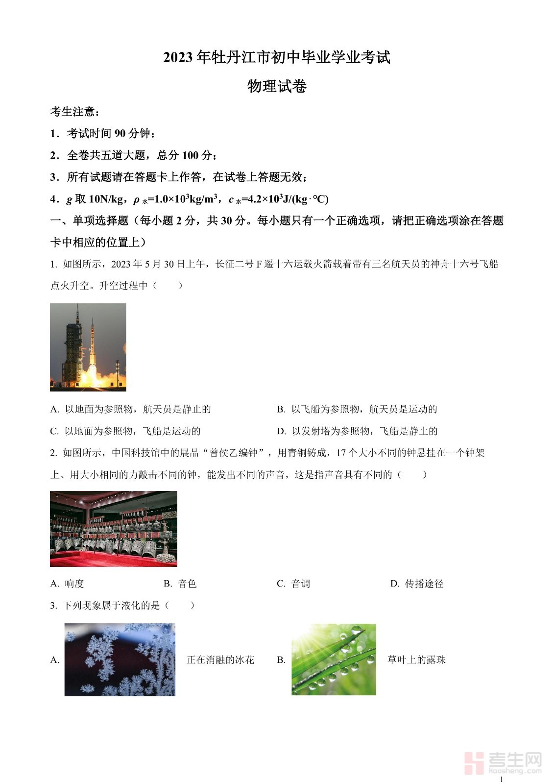 2023年黑龙江省牡丹江市中考物理试题(原卷版)