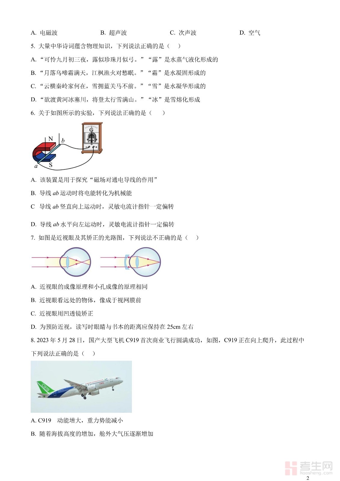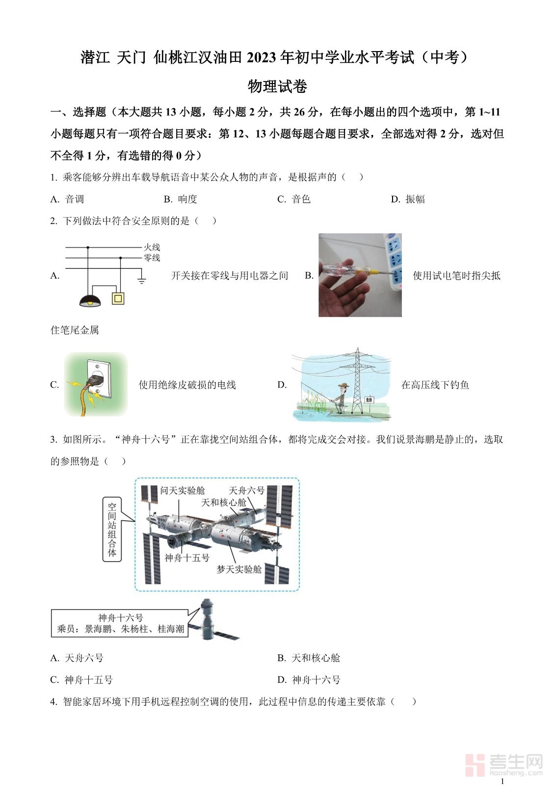 2023年湖北省潜江、天门、仙桃、江汉油田中考物理试题(原卷版)