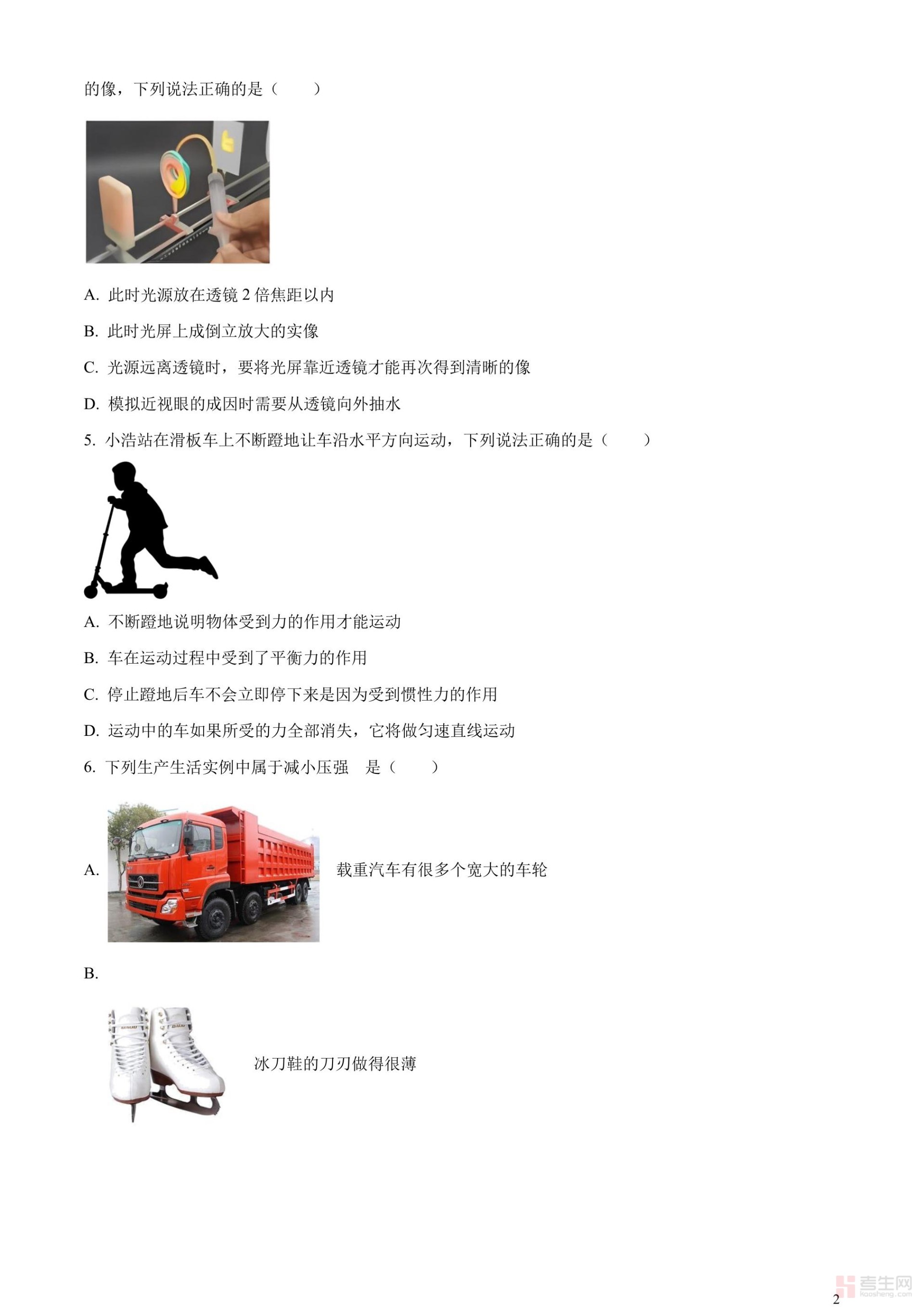 2023年湖北省宜昌市中考理综物理试题(原卷版)