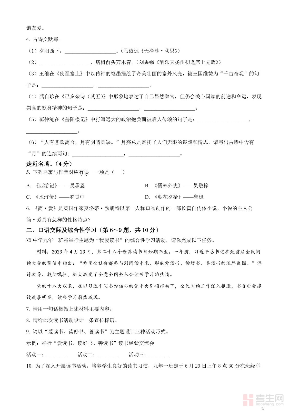 2023年中考真题