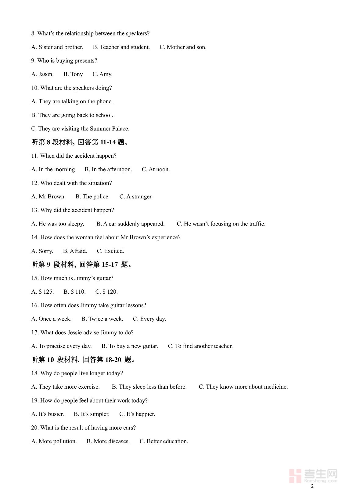 2023年广东省广州市中考英语真题(原卷版)