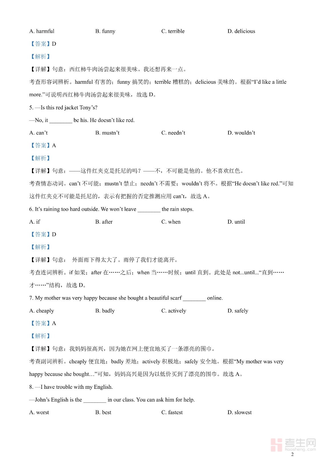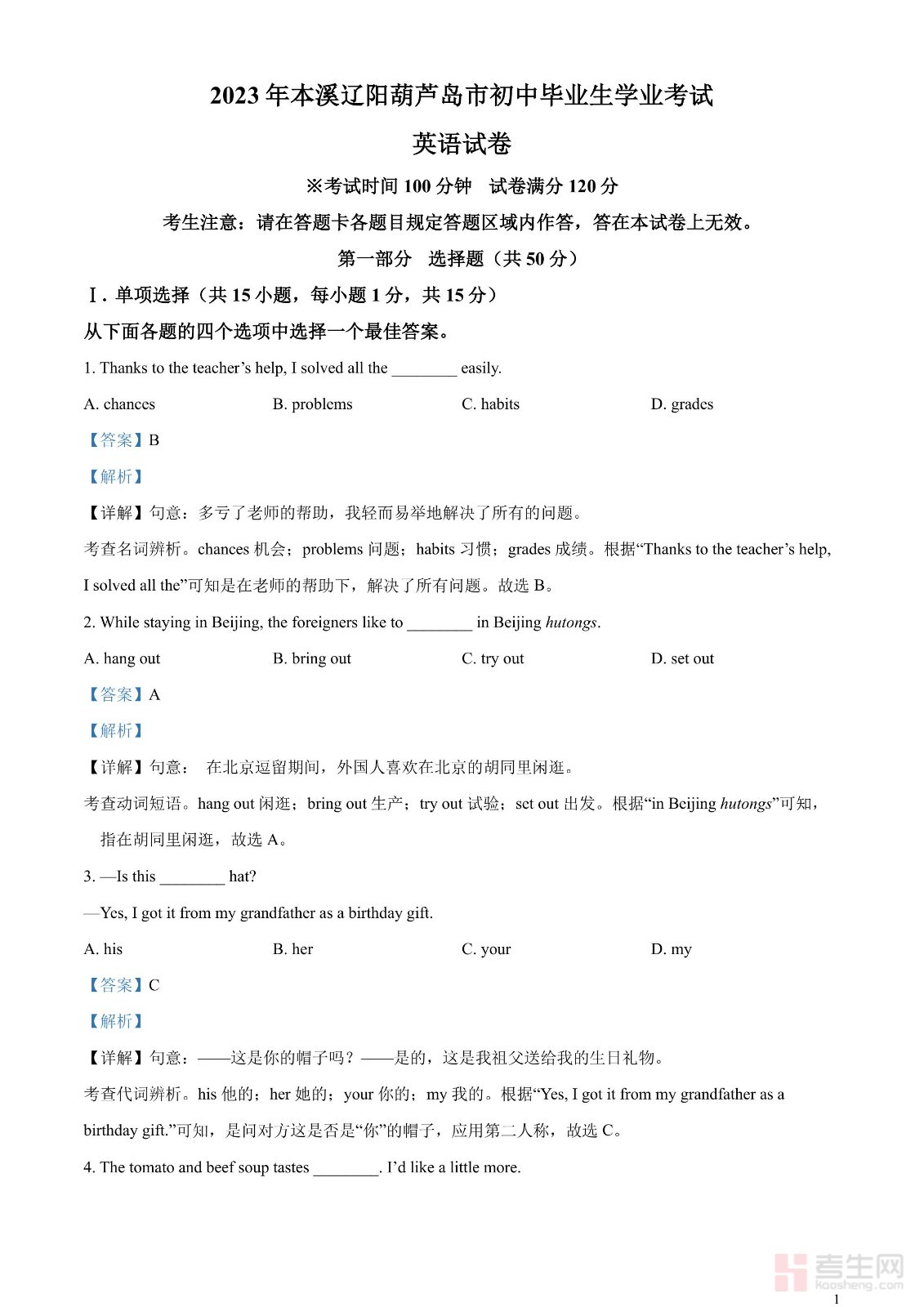 2023年辽宁省本溪市、辽阳市、葫芦岛市中考英语真题(解析版)