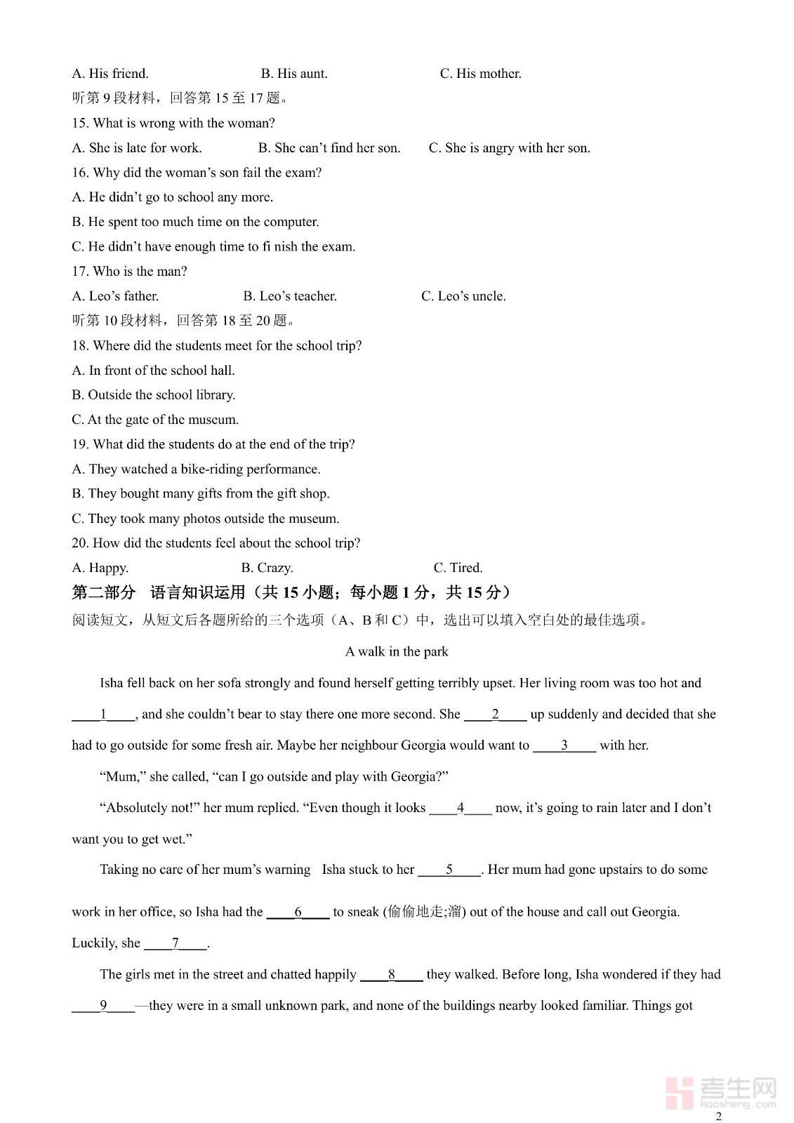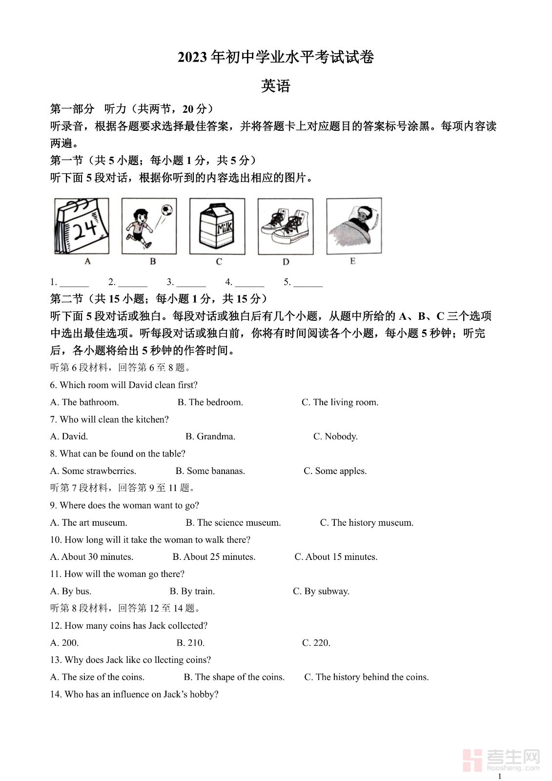 2023年内蒙古自治区包头市中考英语真题(原卷版)