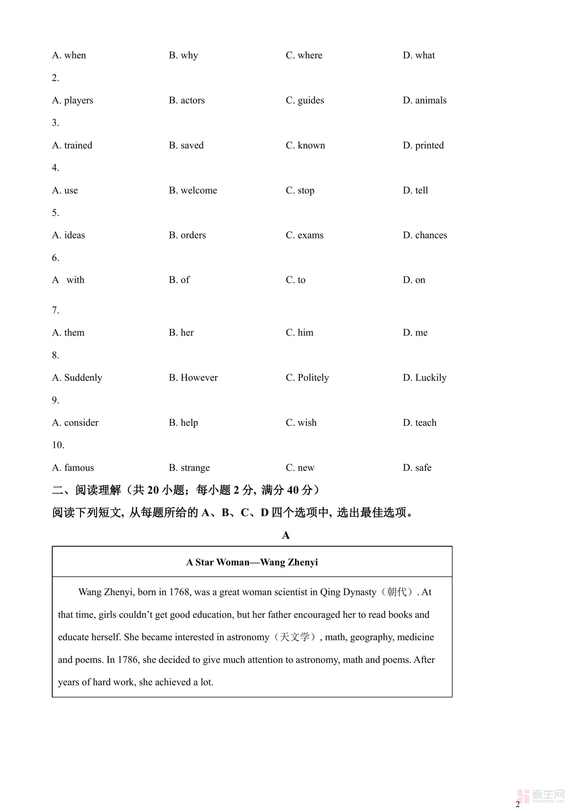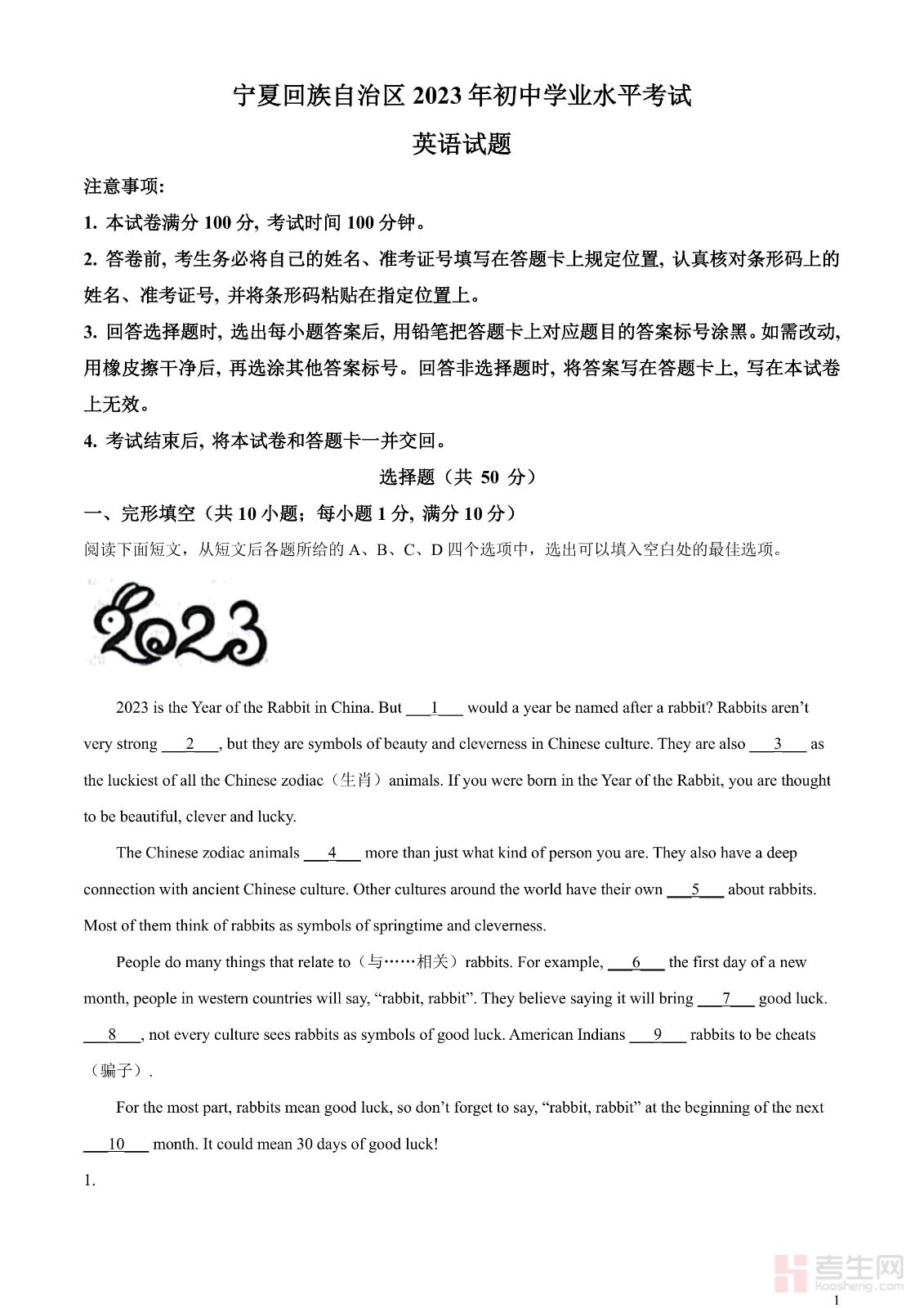 2023年宁夏回族自治区中考英语真题 (原卷版)