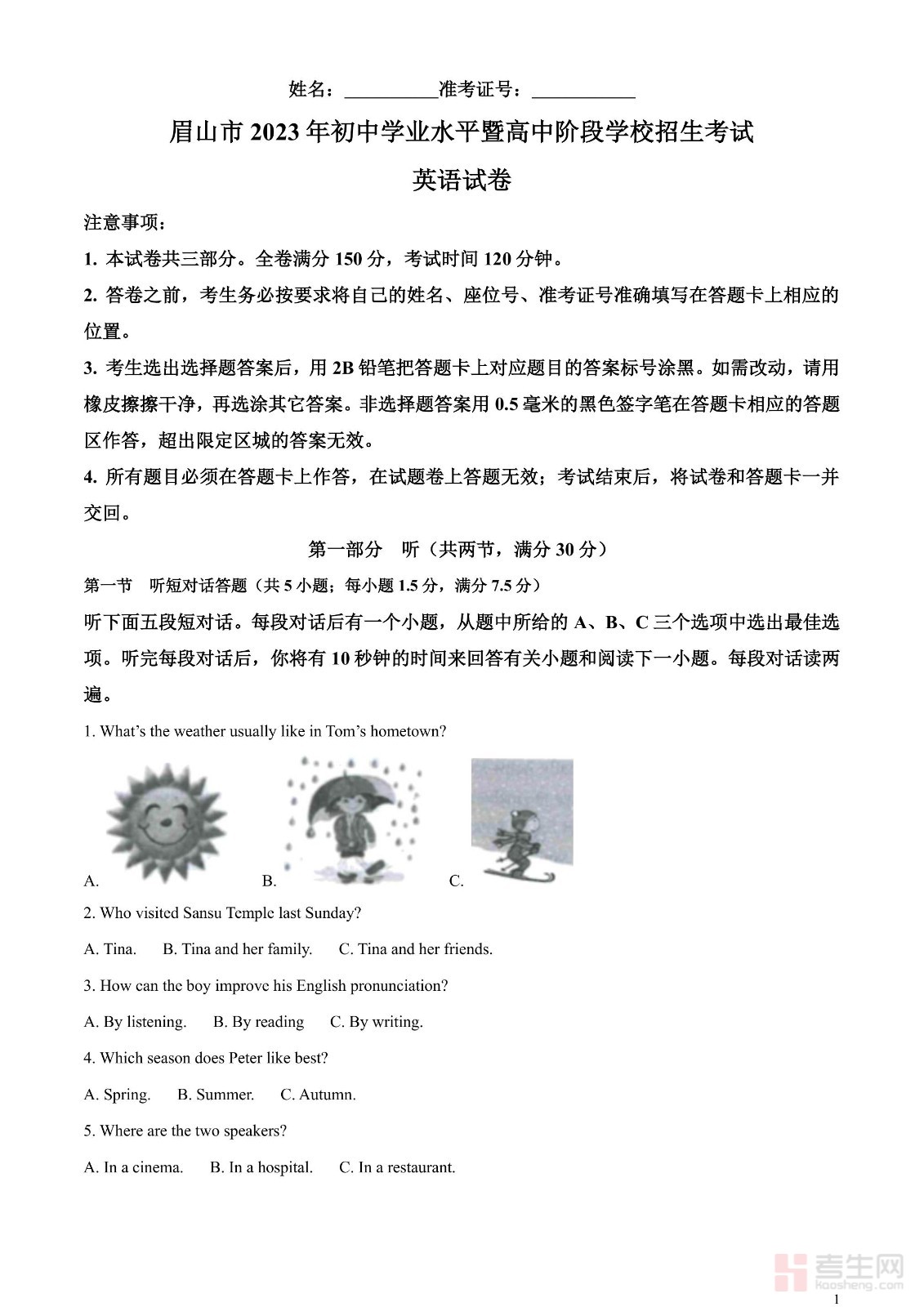 2023年四川省眉山市中考英语真题(解析版)