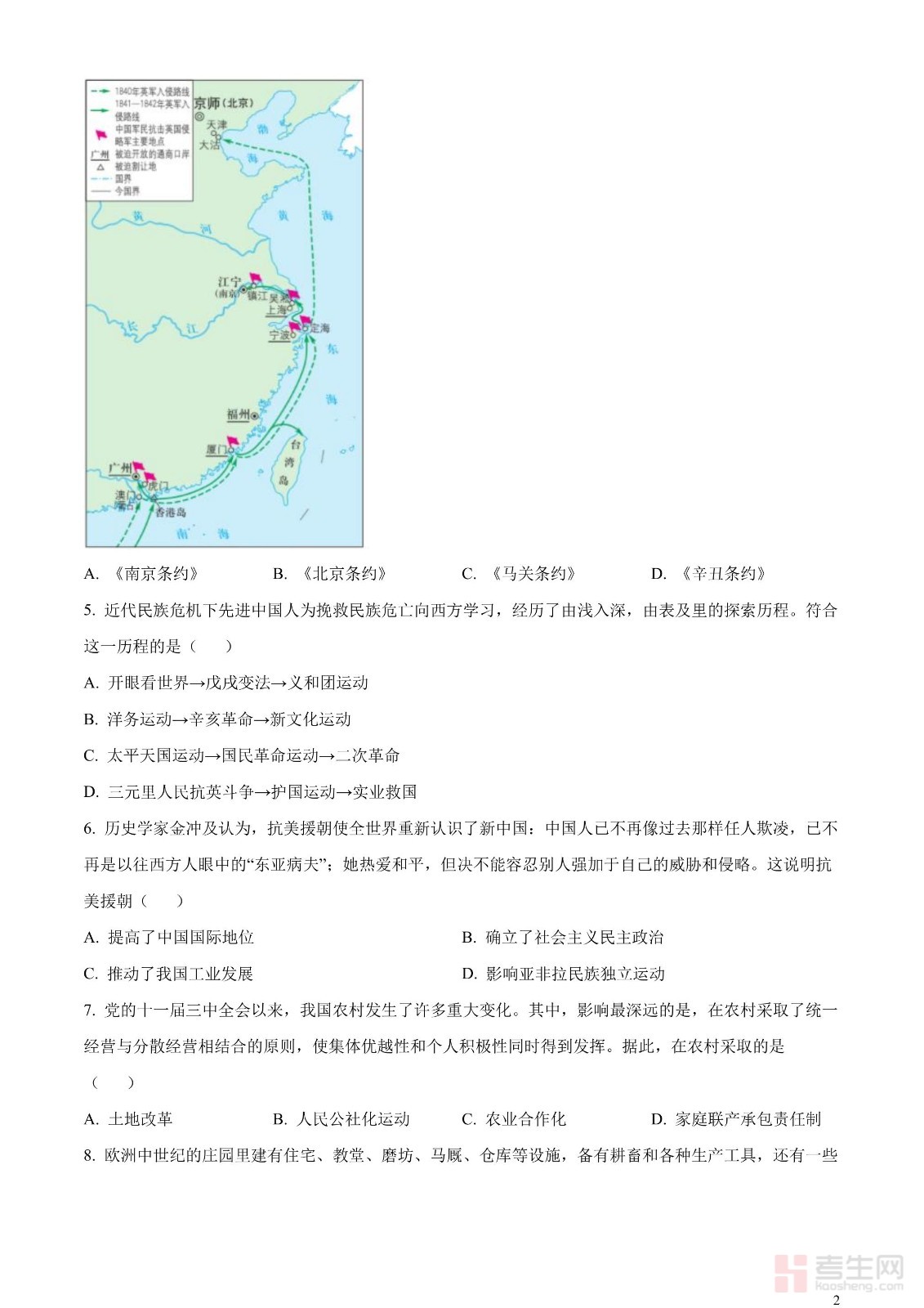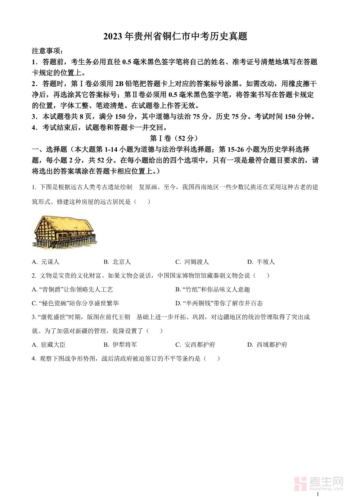 2023年贵州省铜仁市中考历史真题(原卷版)