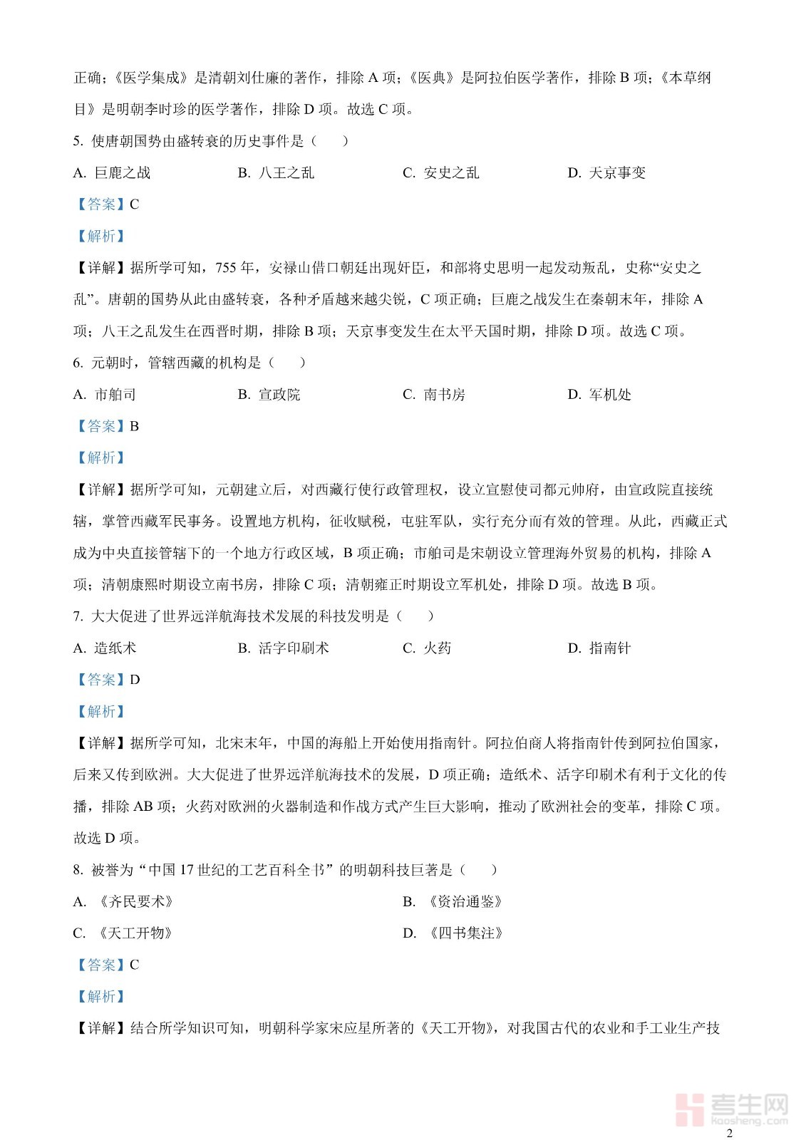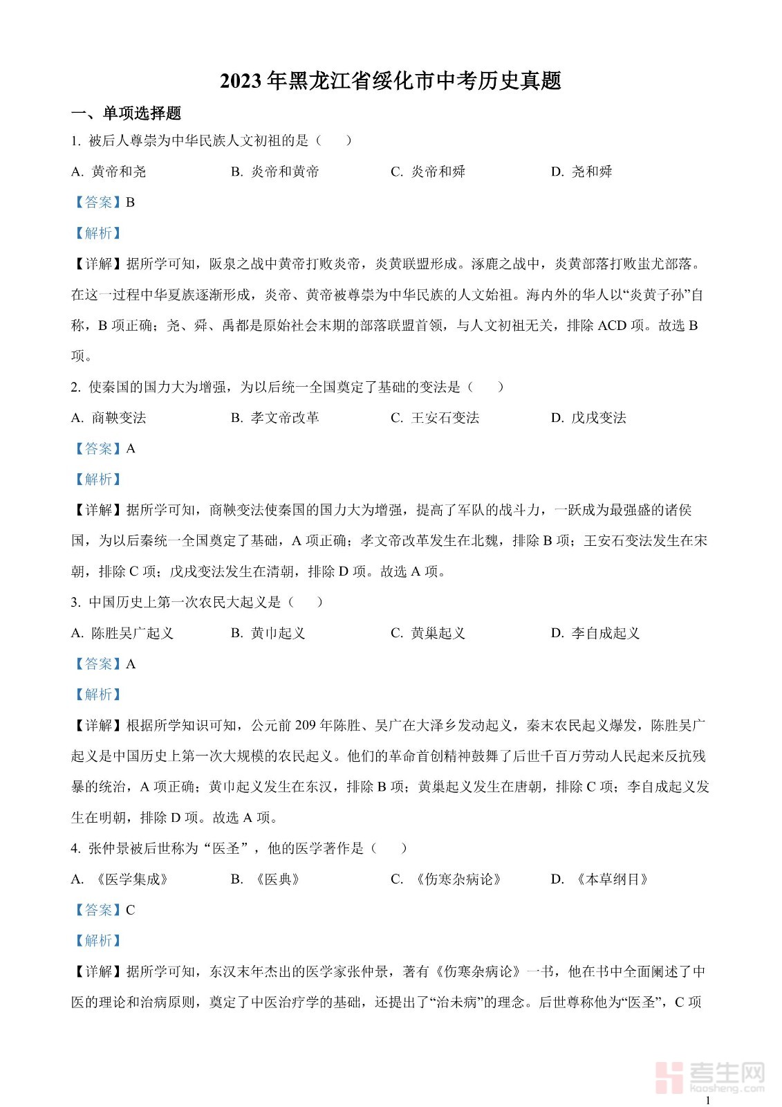 2023年黑龙江省绥化市中考历史真题(解析版)
