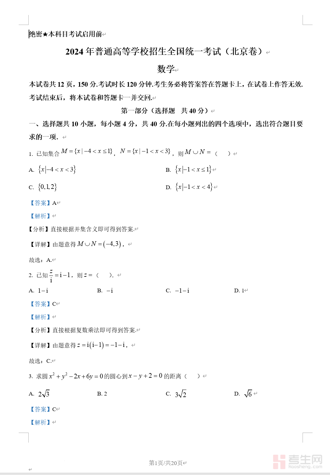 2024年高考英语试卷(北京)(机考 无听力)(解析卷)