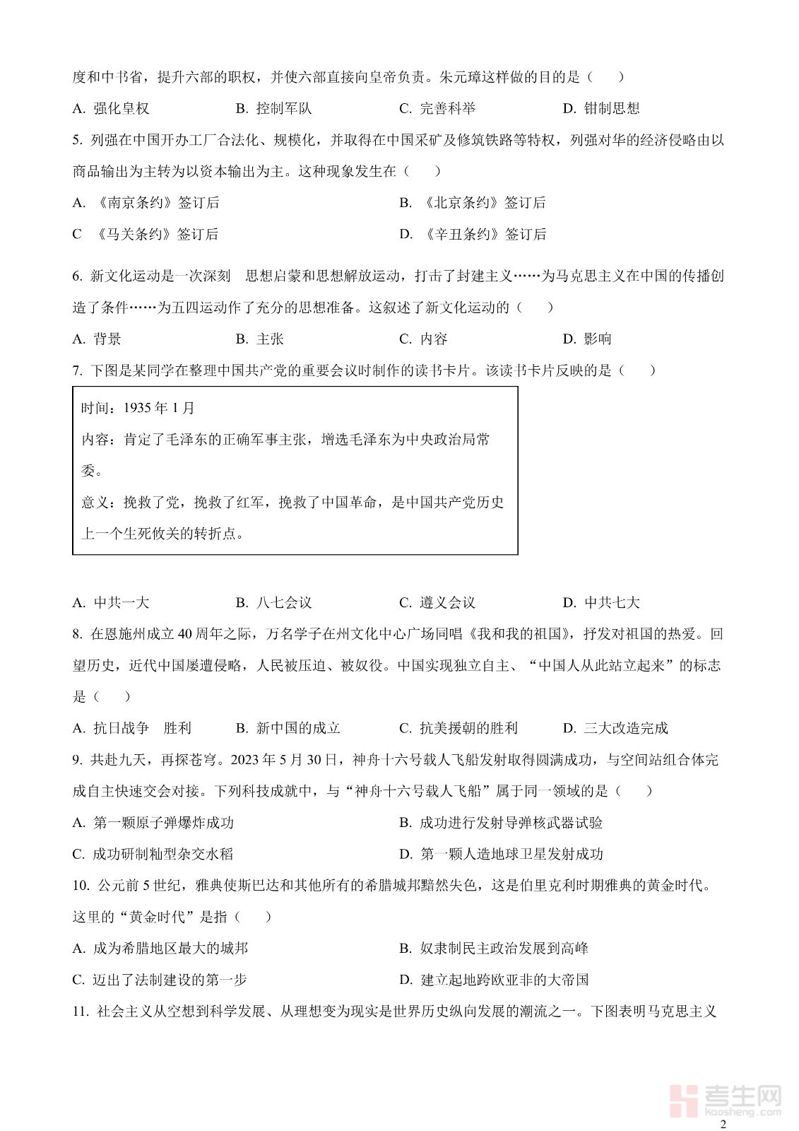 2023年中考历史真题
