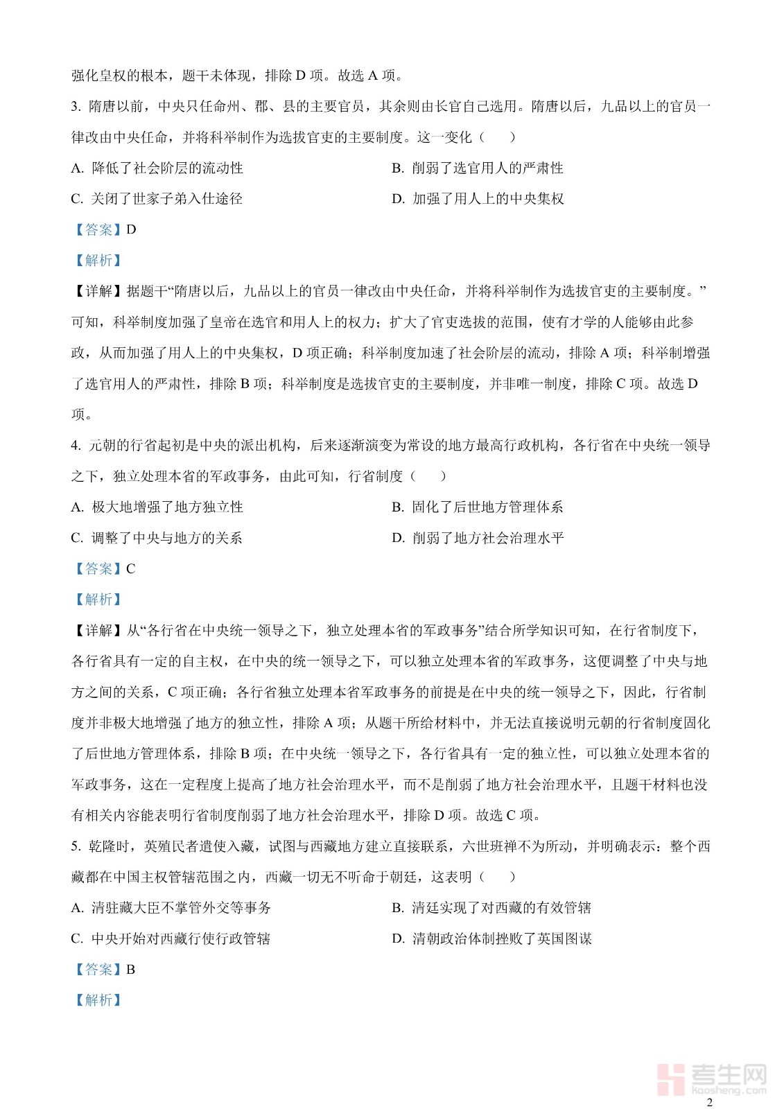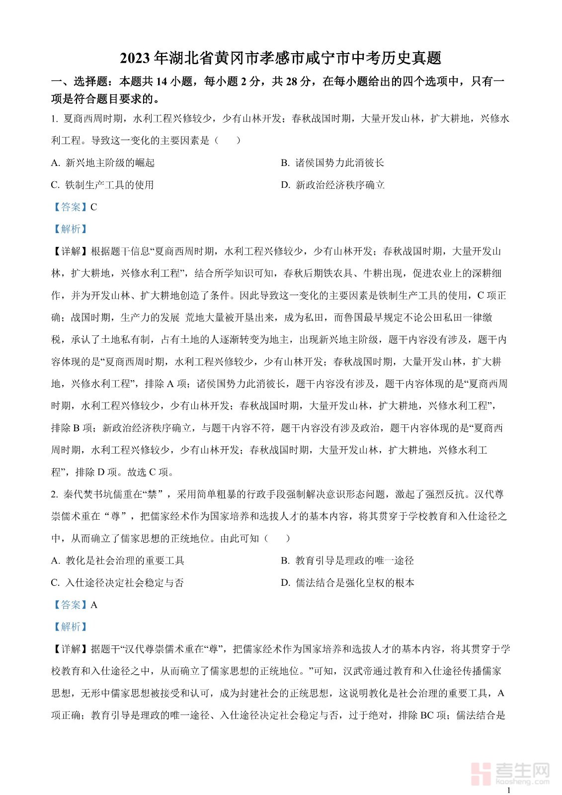 2023年湖北省黄冈市孝感市咸宁市中考历史真题(解析版)