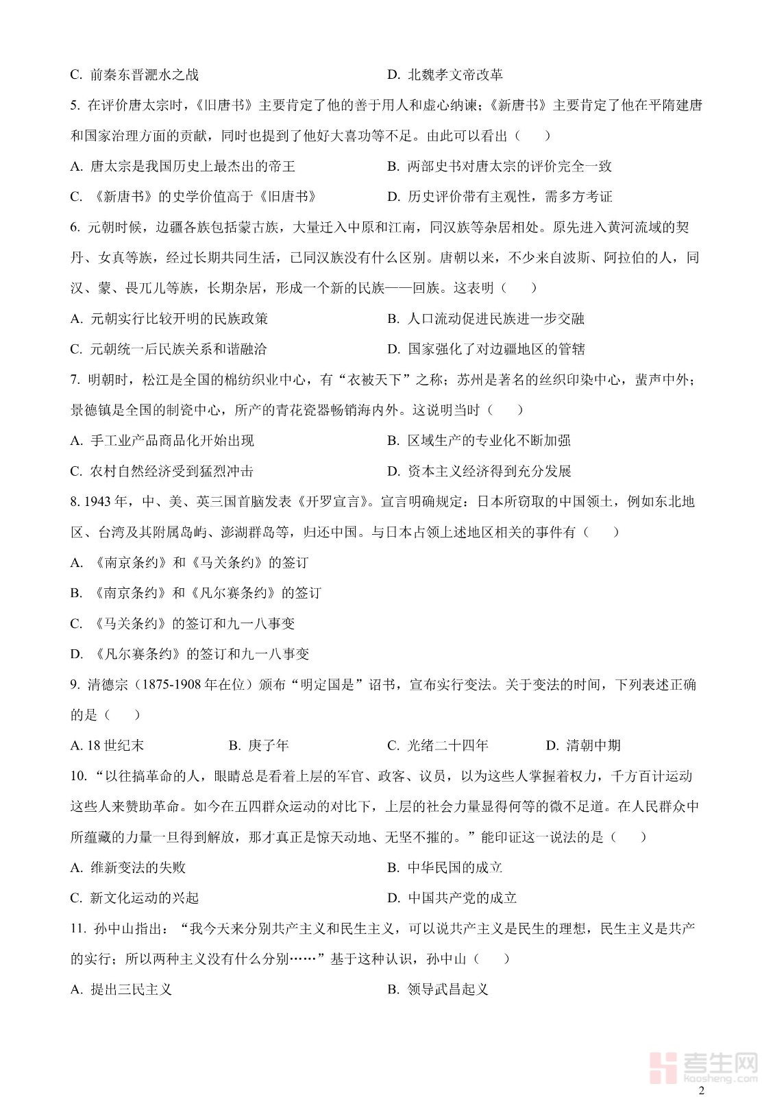 2023年中考历史真题