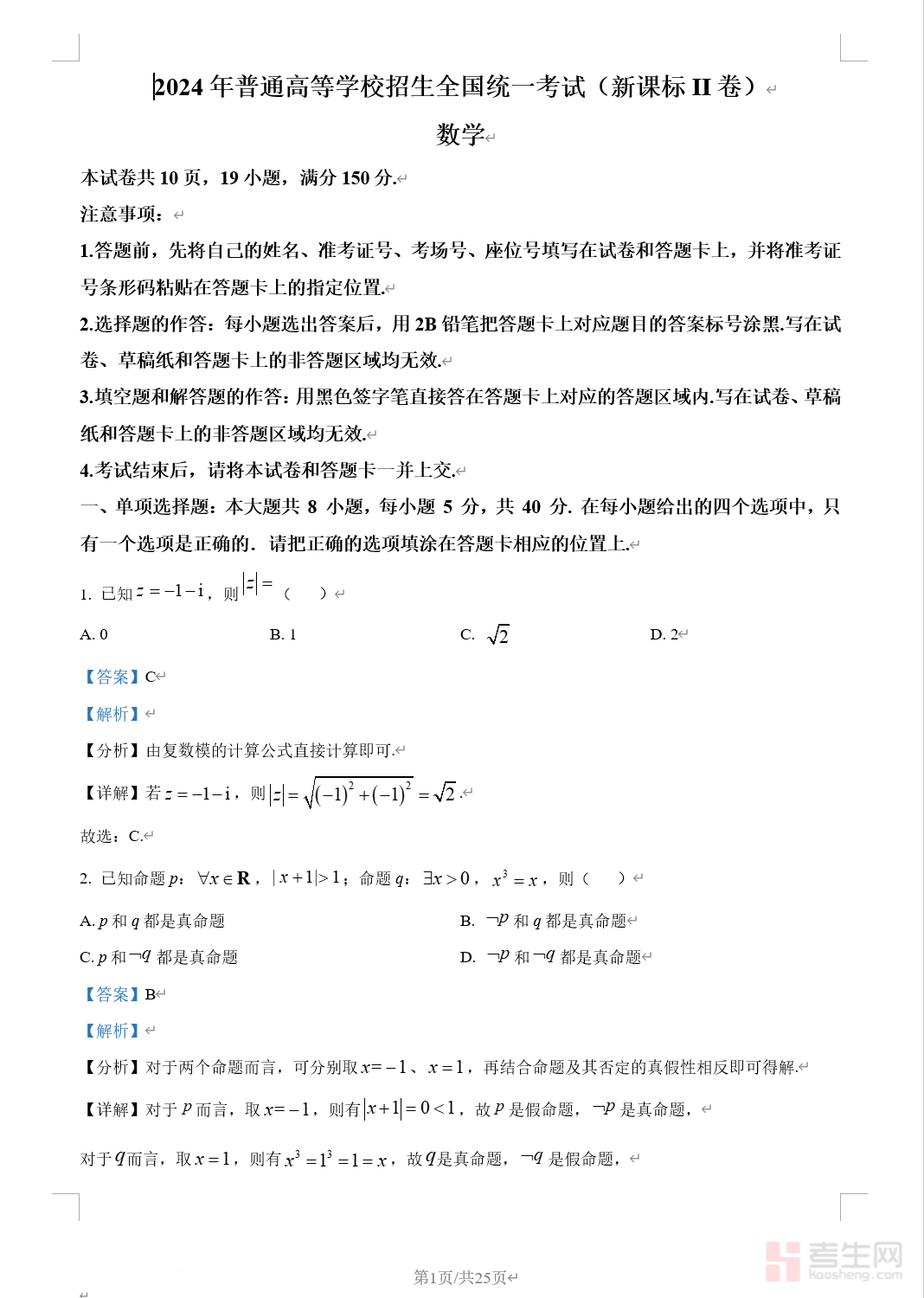 2024年新课标Ⅰ卷数学卷高考真题文字版