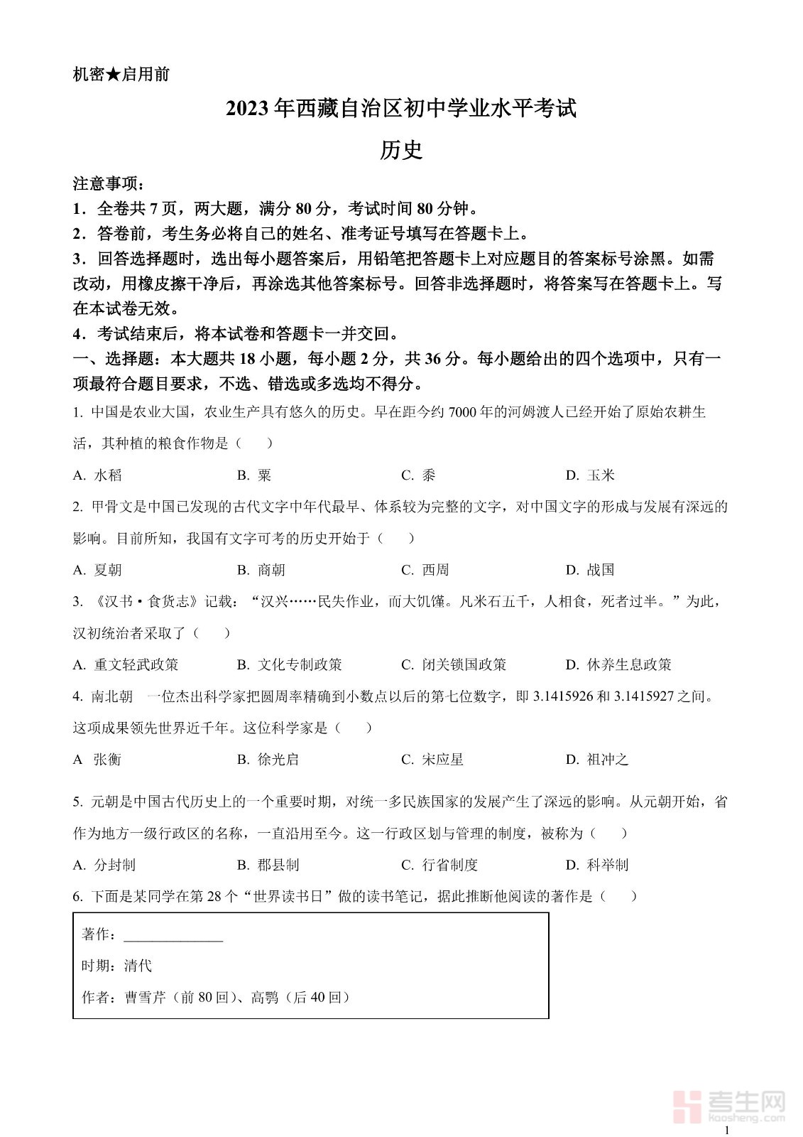 2023年中考历史真题