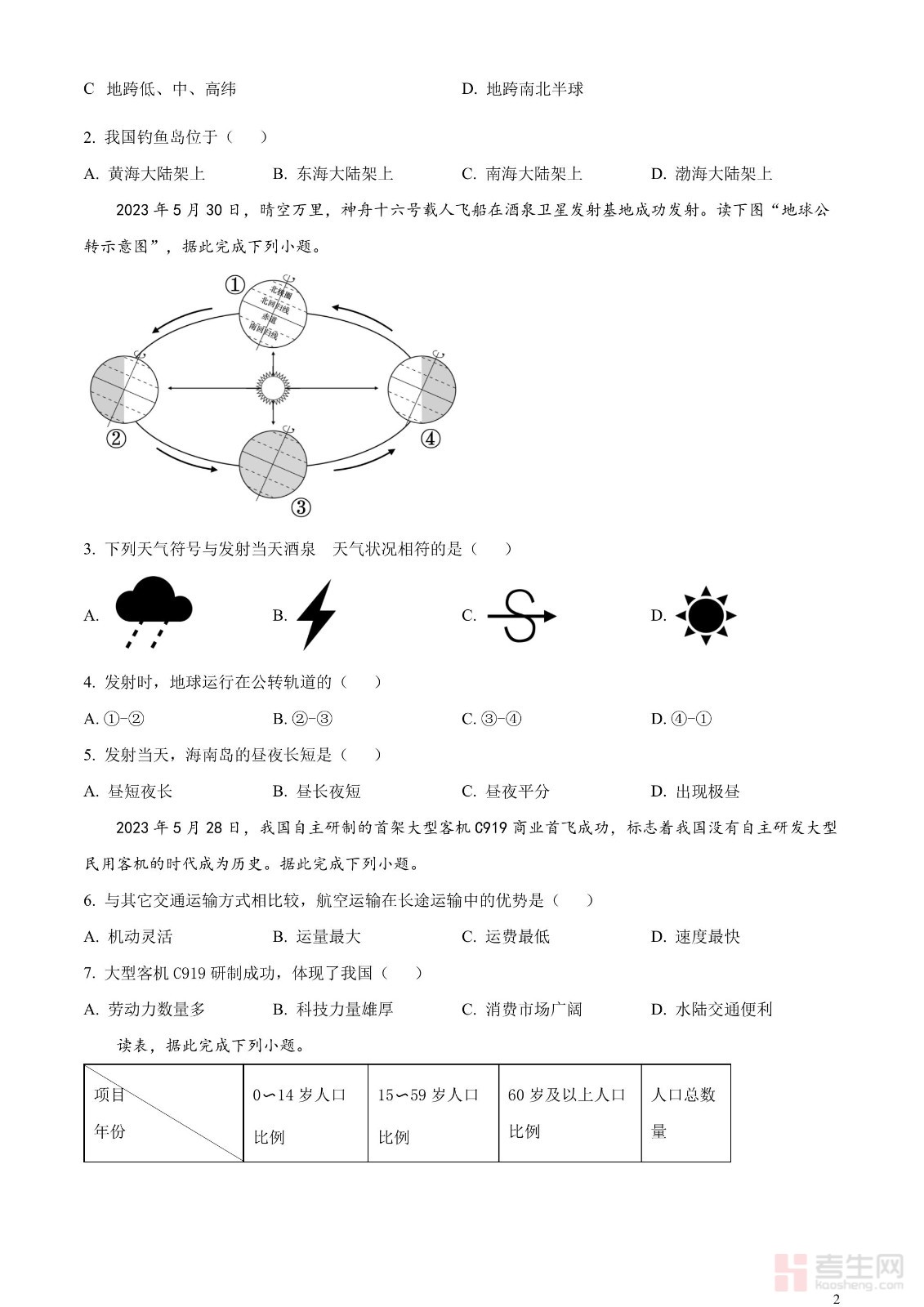 2023年贵州省黔东南州中考地理真题(原卷版)
