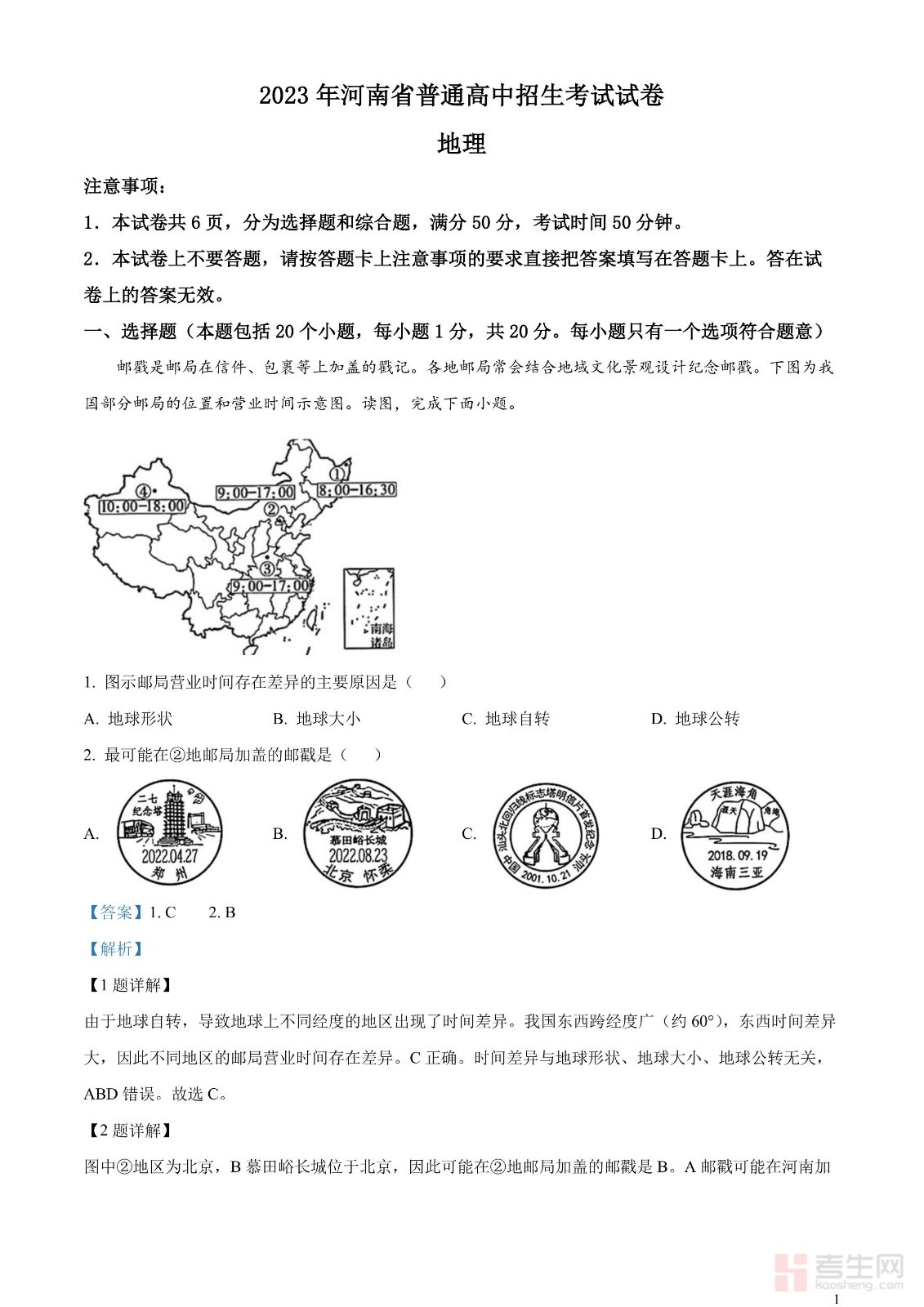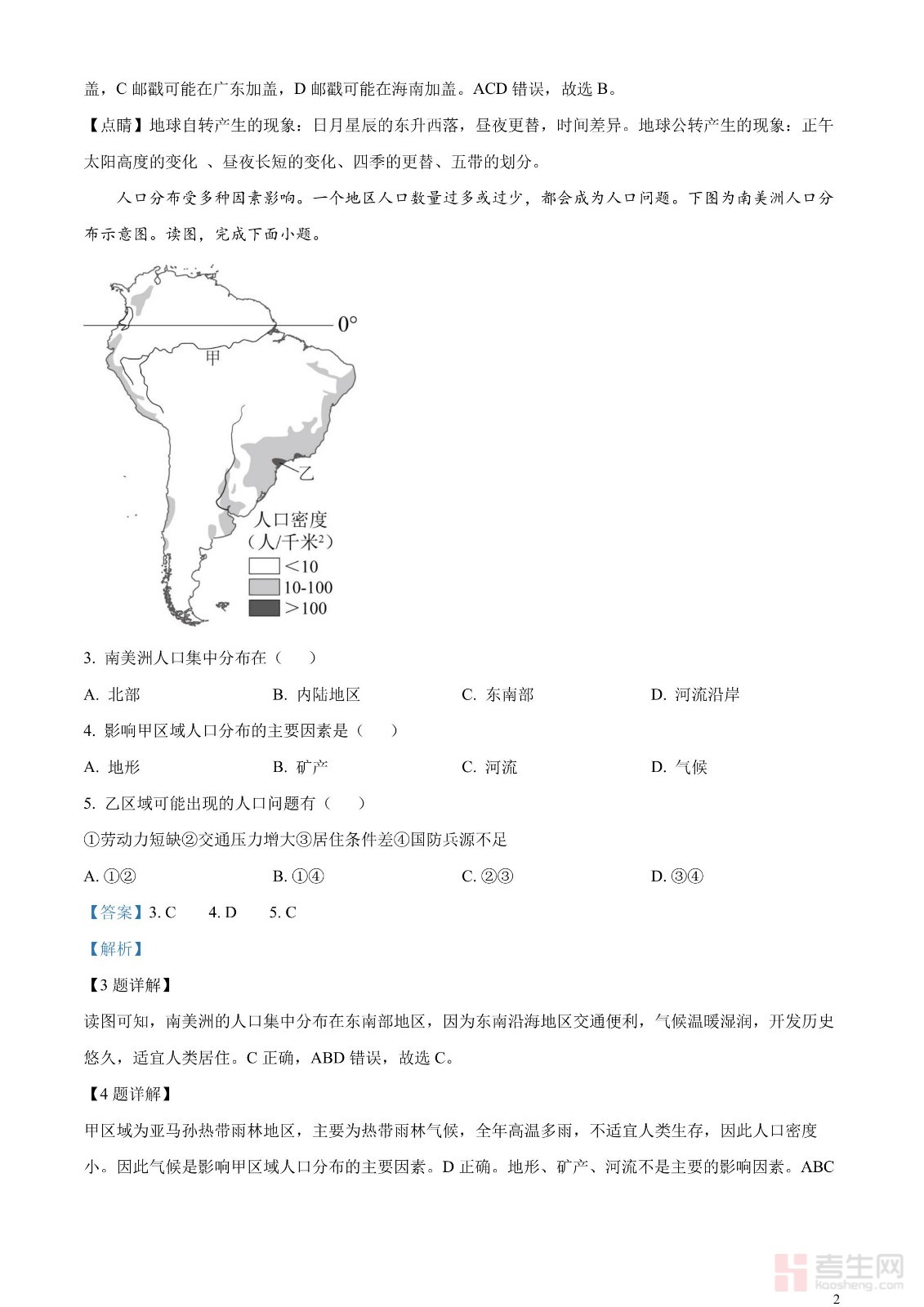 2023年贵州省黔东南州中考地理真题(原卷版)