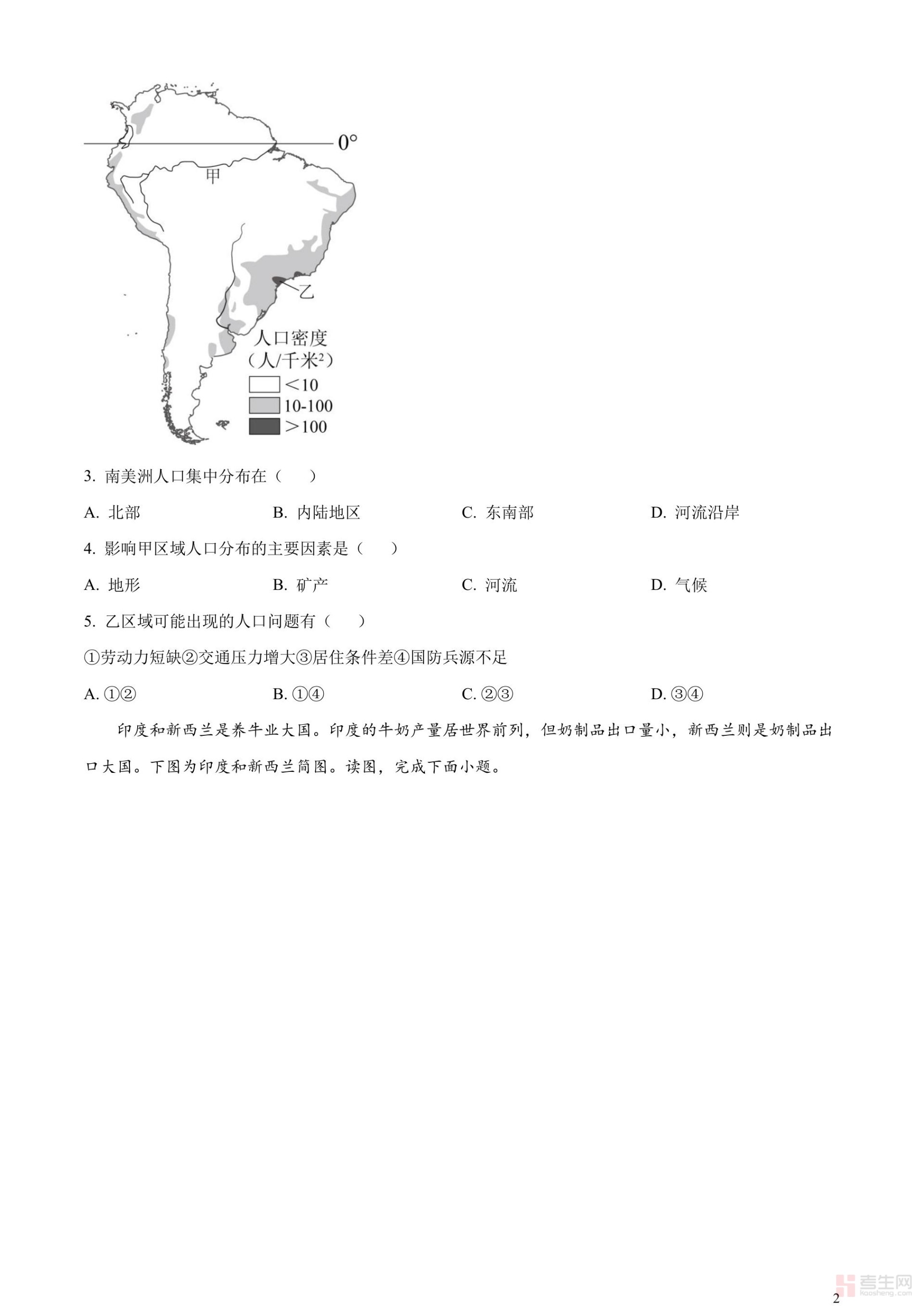 2023年贵州省黔东南州中考地理真题(原卷版)