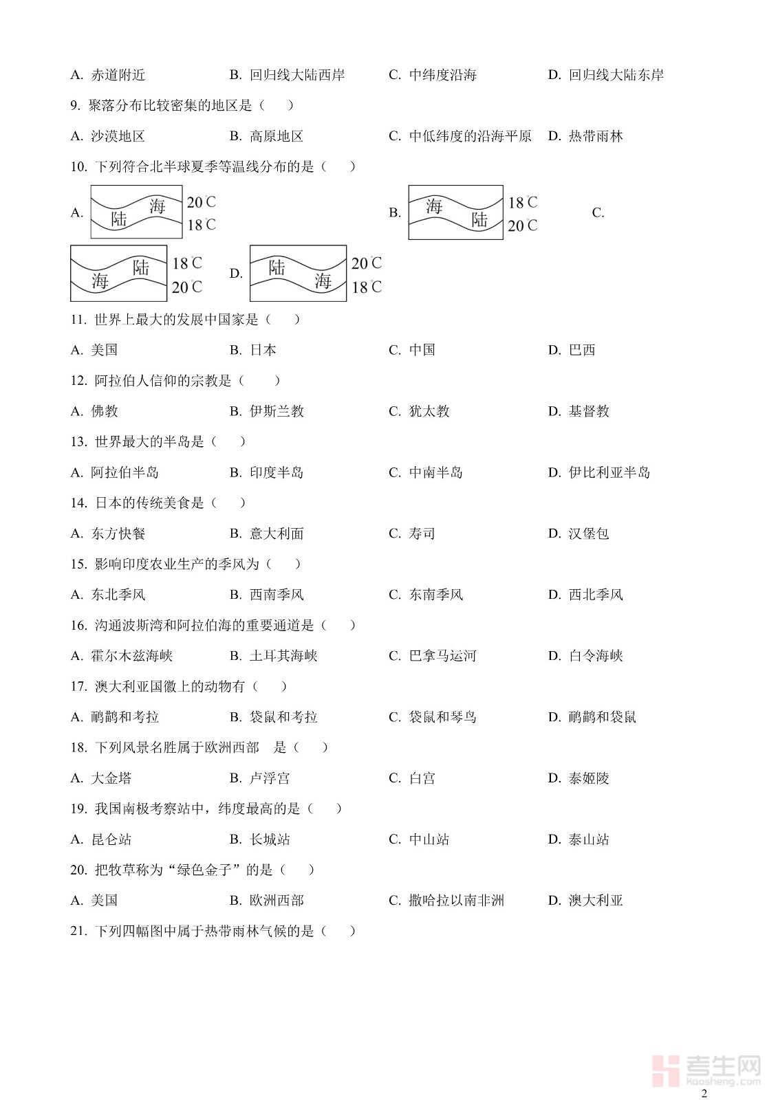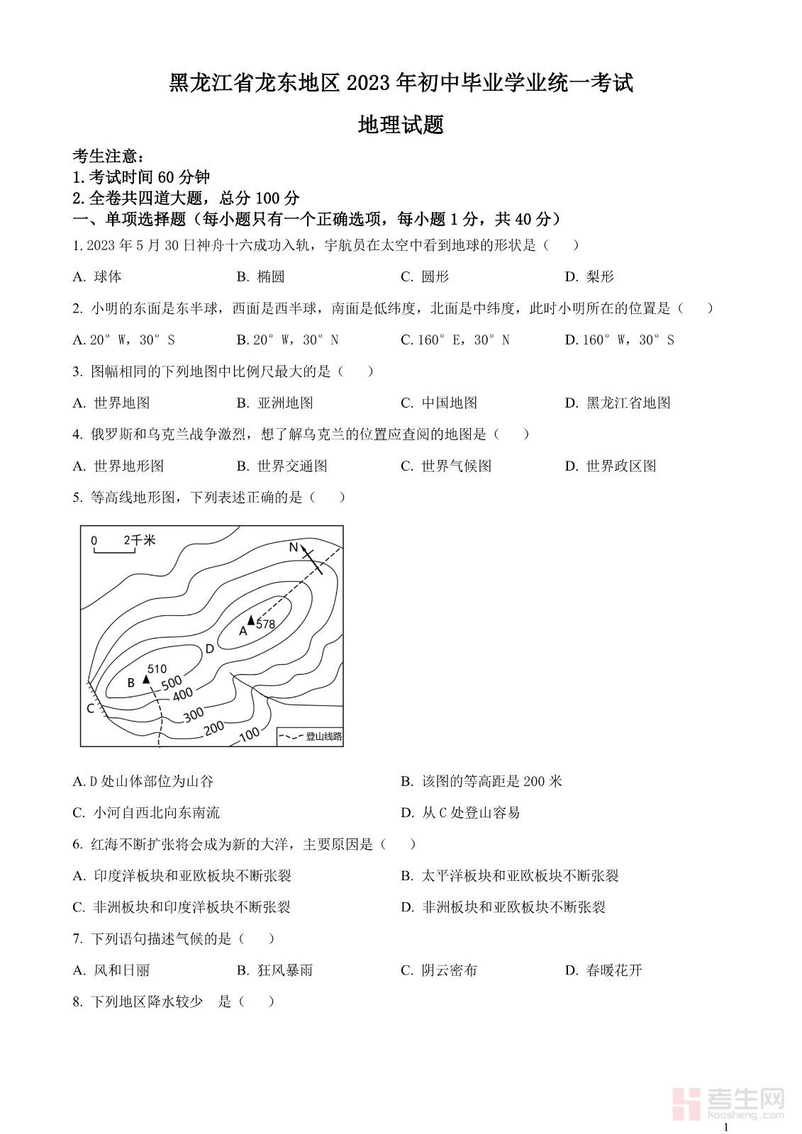 2023年黑龙江龙东地区中考地理真题(原卷版)
