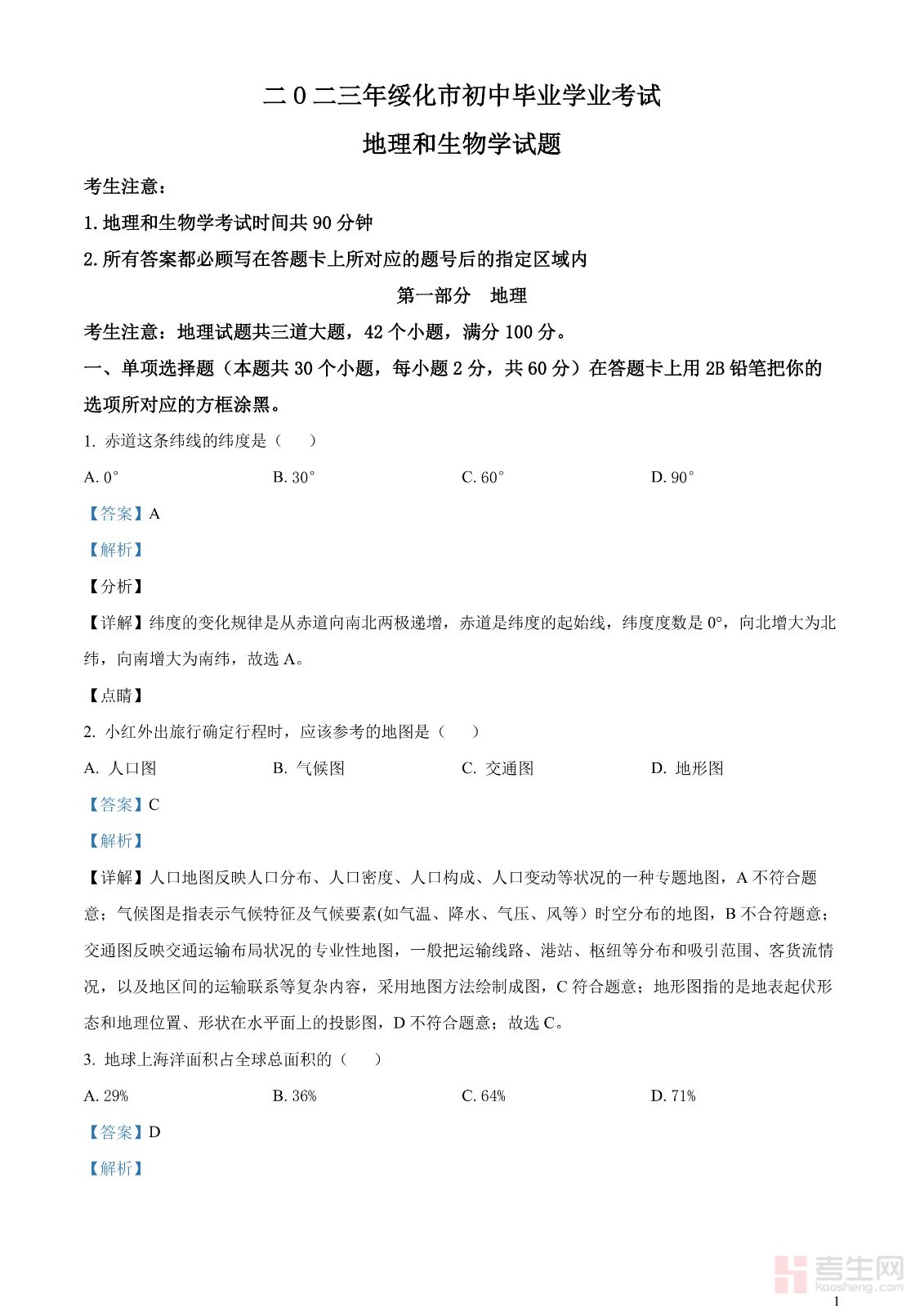 2023年黑龙江省绥化市中考地理真题(解析版)