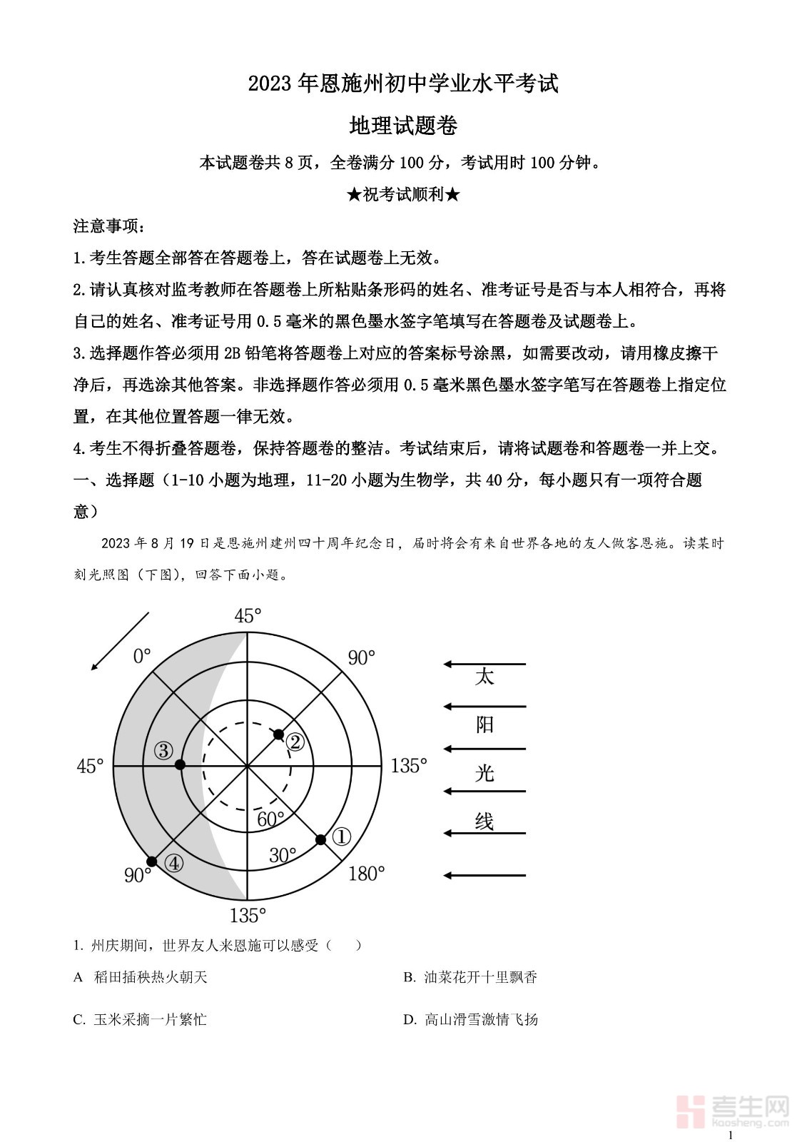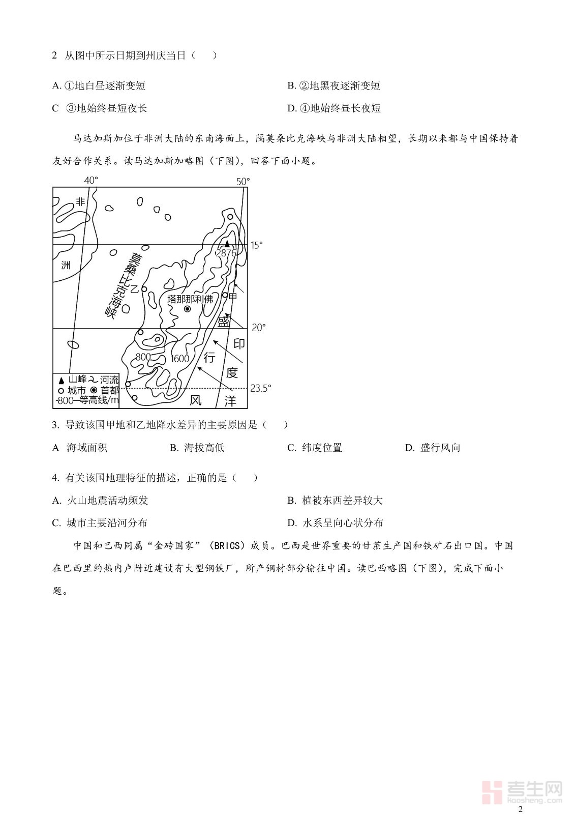 2023年贵州省黔东南州中考地理真题(原卷版)