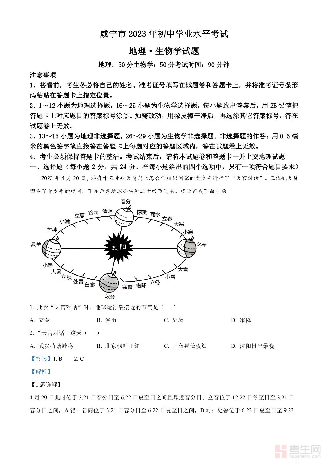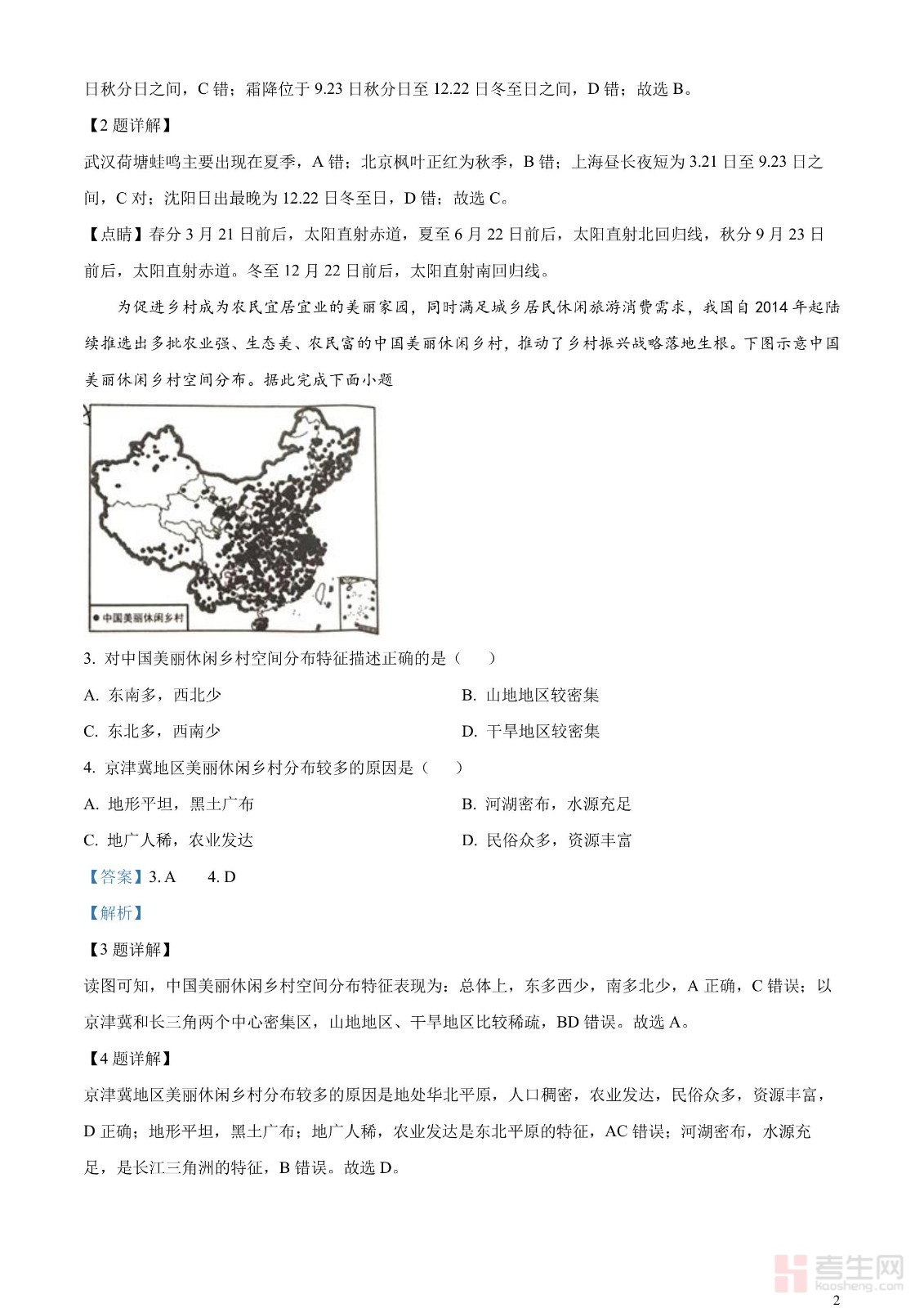 2023年湖北省黄冈市孝感市咸宁市中考地理真题(解析版)