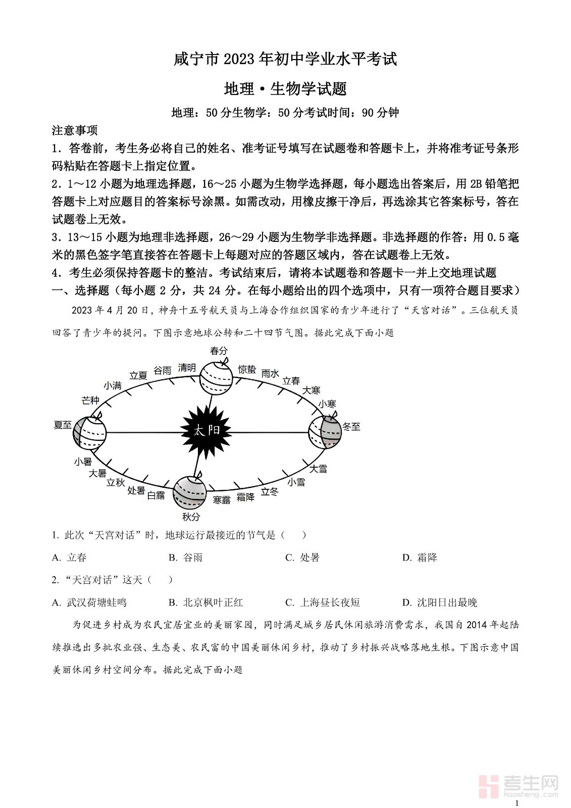 2023年中考地理真题