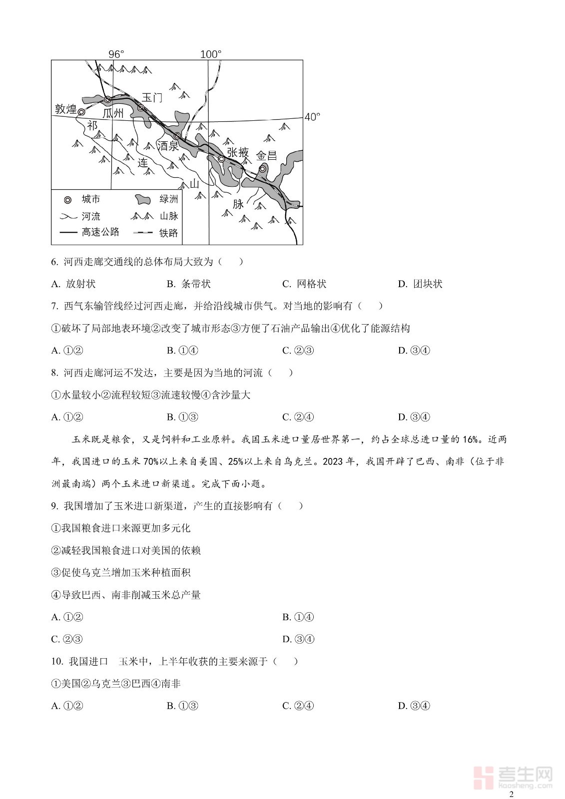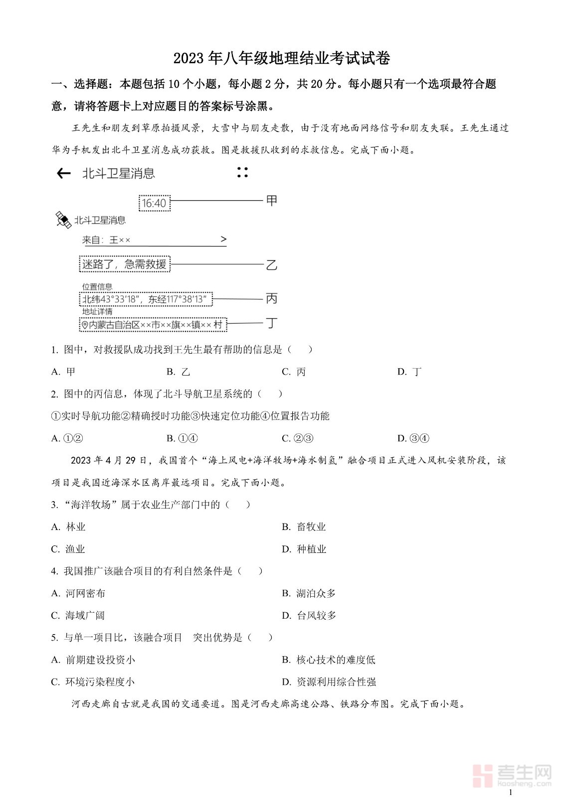 2023年贵州省黔东南州中考地理真题(原卷版)