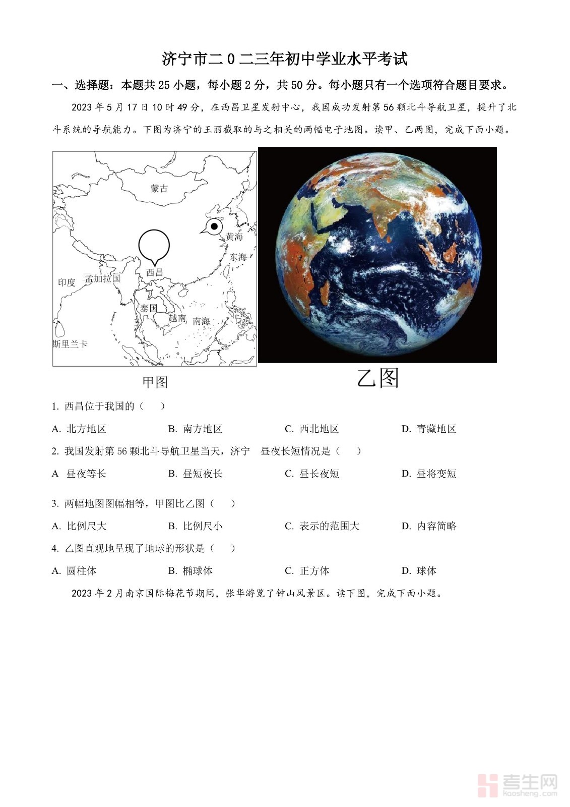 2023年贵州省黔东南州中考地理真题(原卷版)