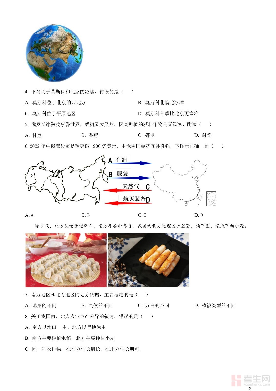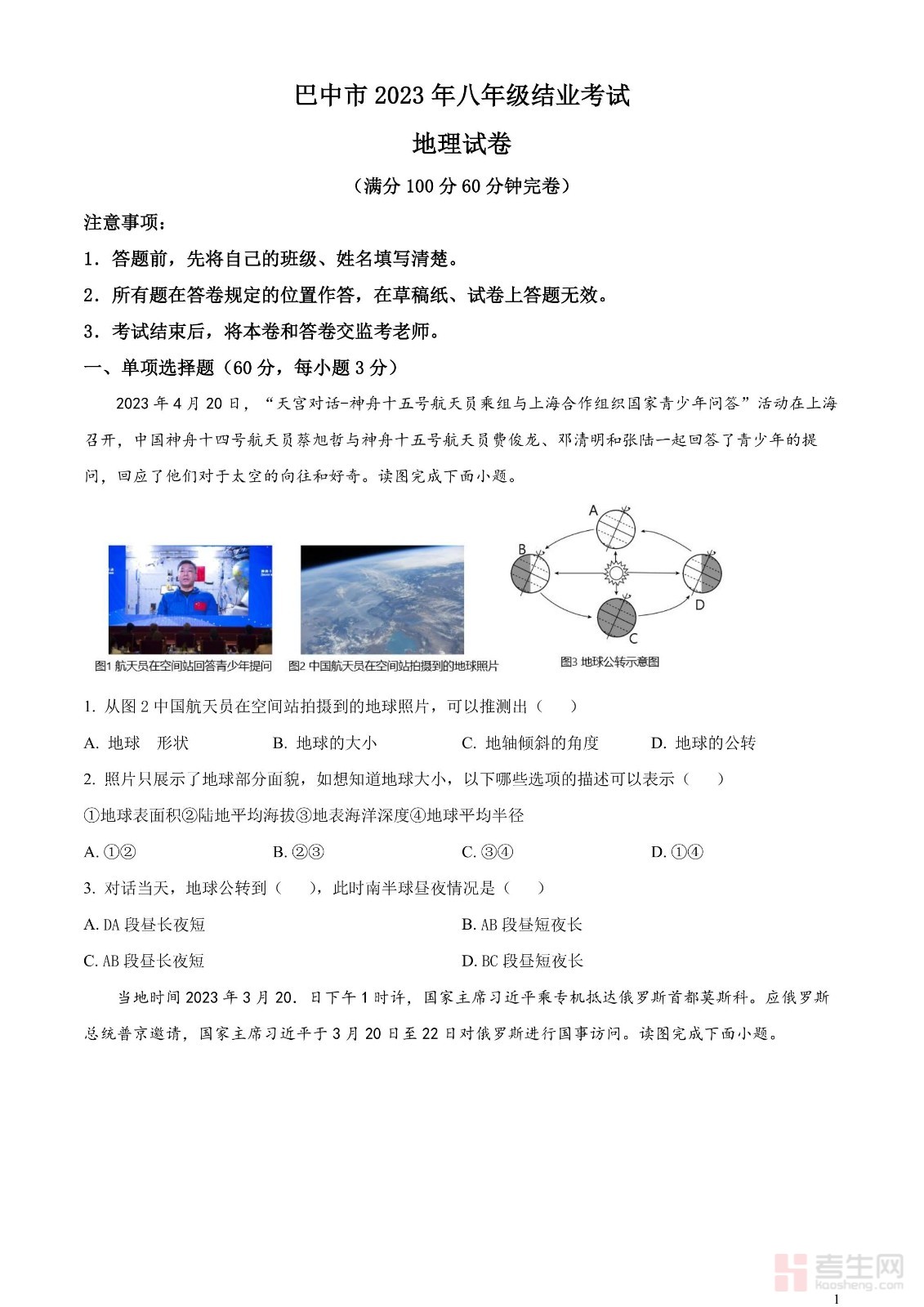 2023年贵州省黔东南州中考地理真题(原卷版)