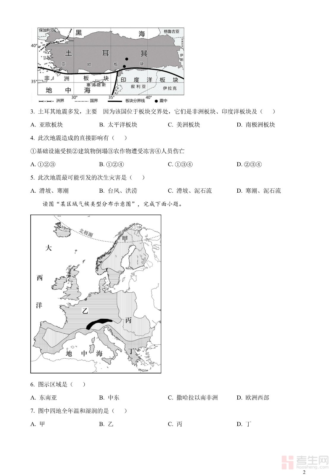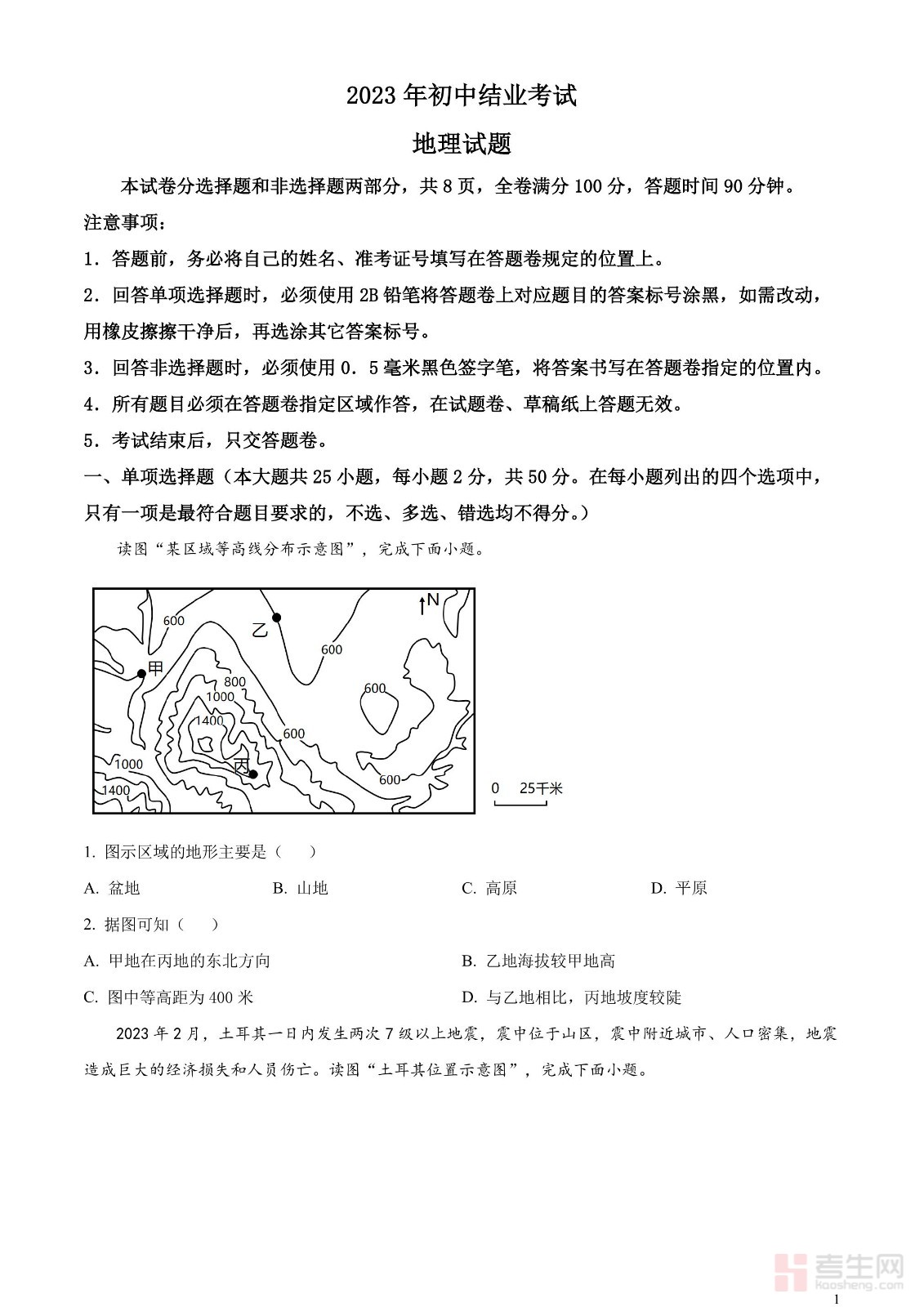 2023年贵州省黔东南州中考地理真题(原卷版)