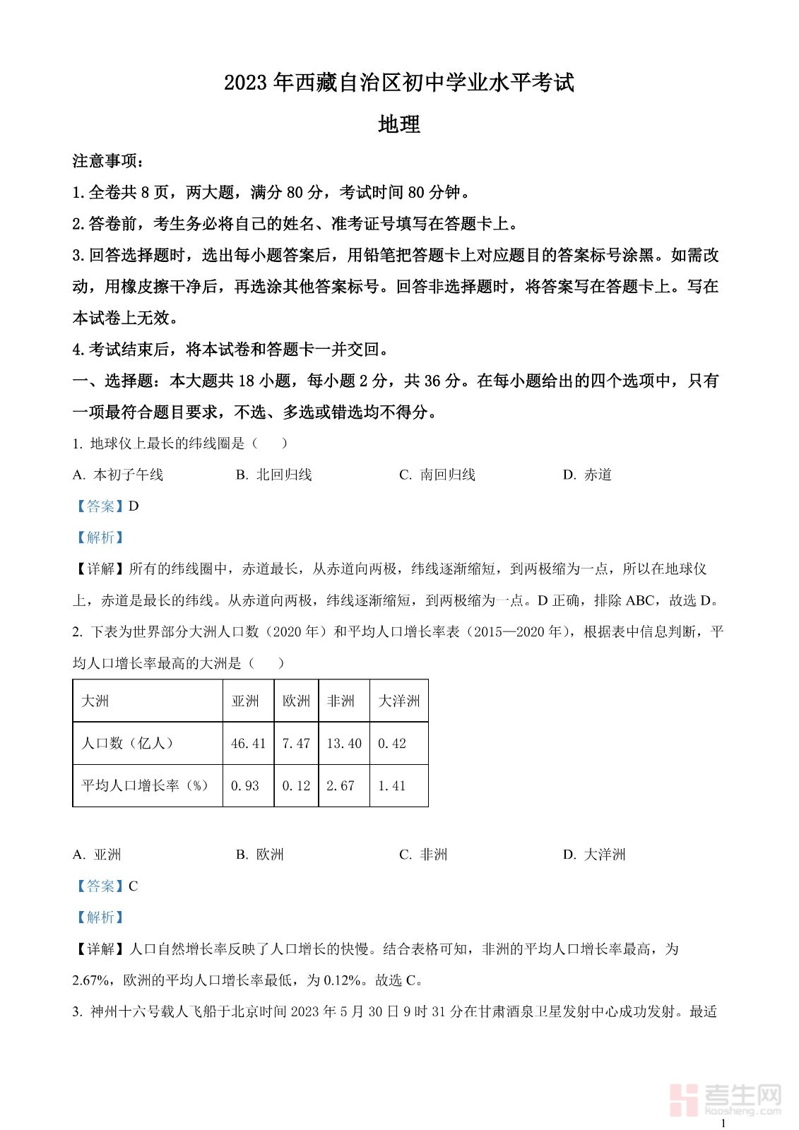 2023年贵州省黔东南州中考地理真题(原卷版)