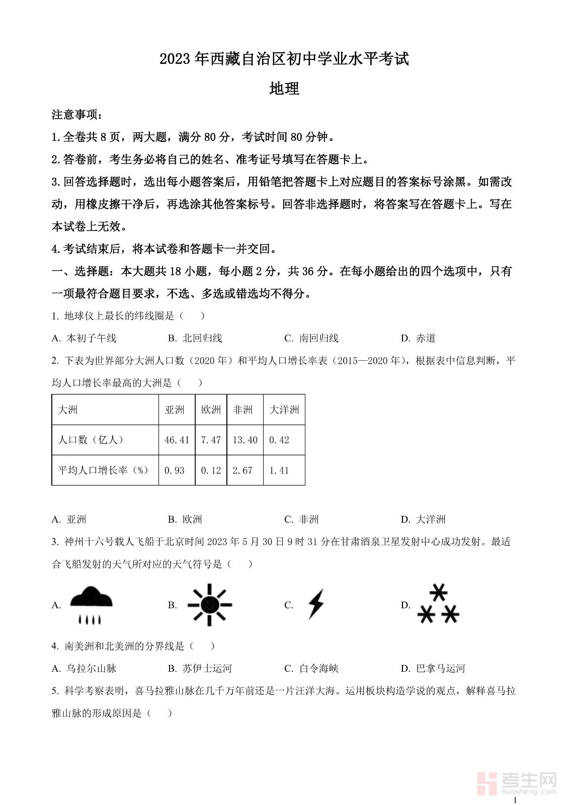 2023年贵州省黔东南州中考地理真题(原卷版)