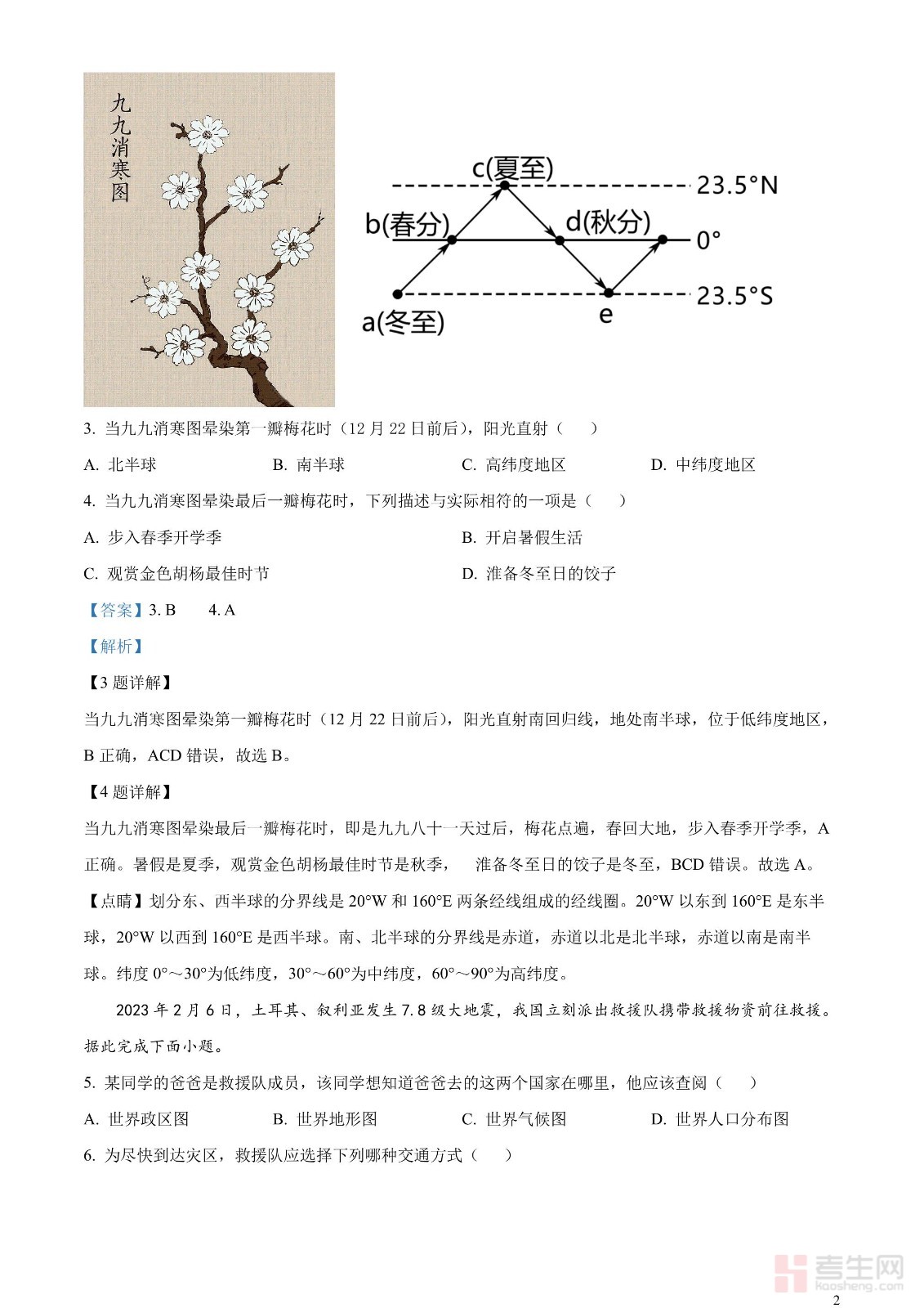2023年贵州省黔东南州中考地理真题(原卷版)