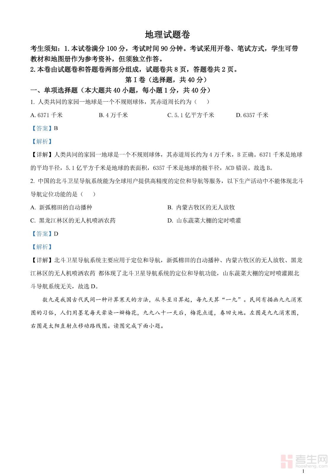 2023年新疆维吾尔自治区新疆生产建设兵团中考地理真题(解析版)
