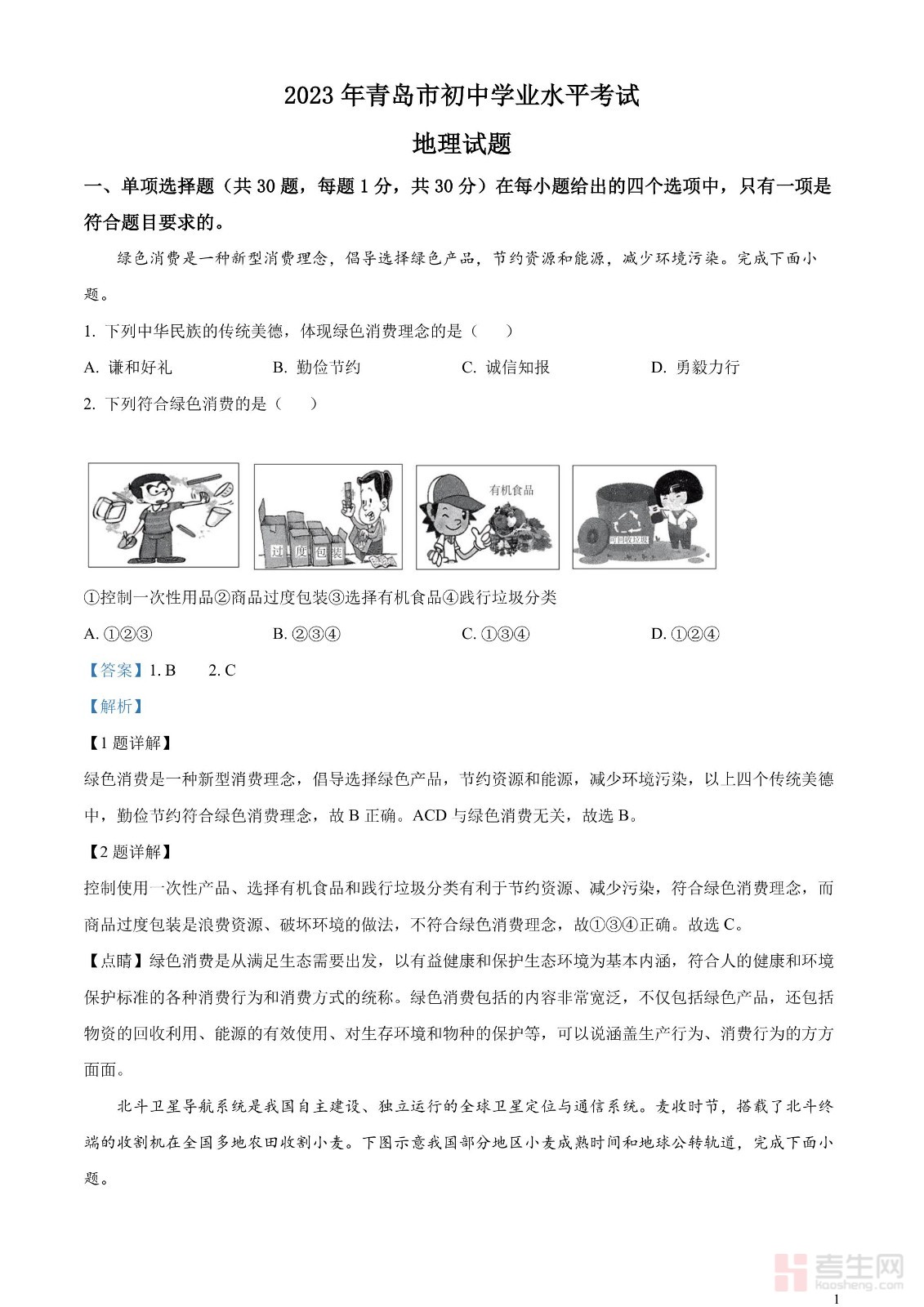 山东省青岛市2023年中考地理真题(解析版)
