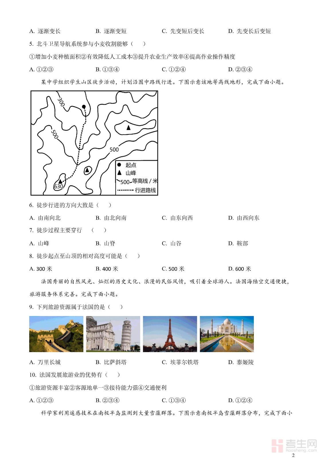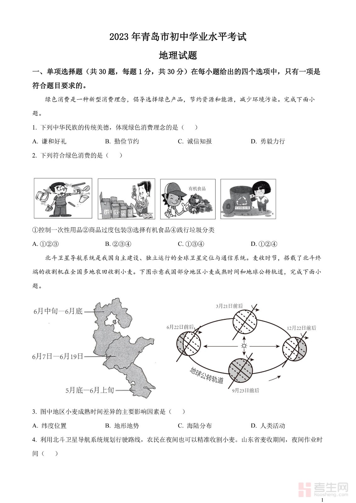 2023年贵州省黔东南州中考地理真题(原卷版)