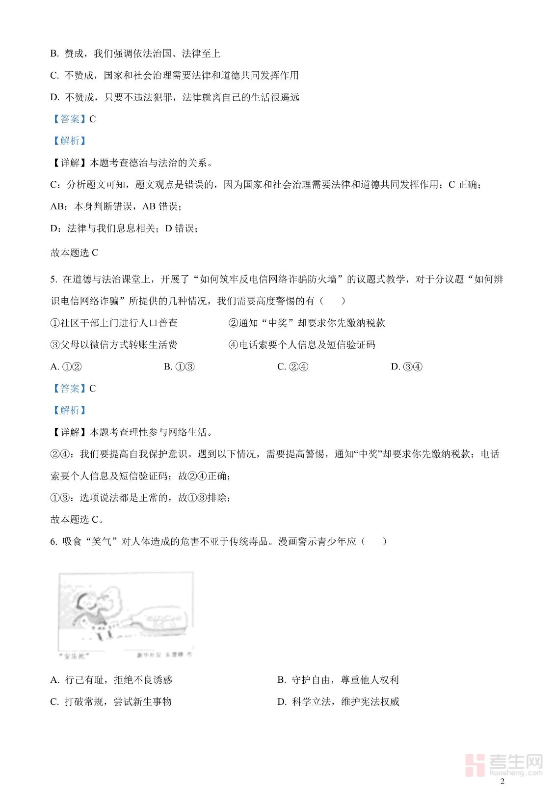 2023年贵州省黔东南苗族侗族自治州中考道德与法治真题(解析版)