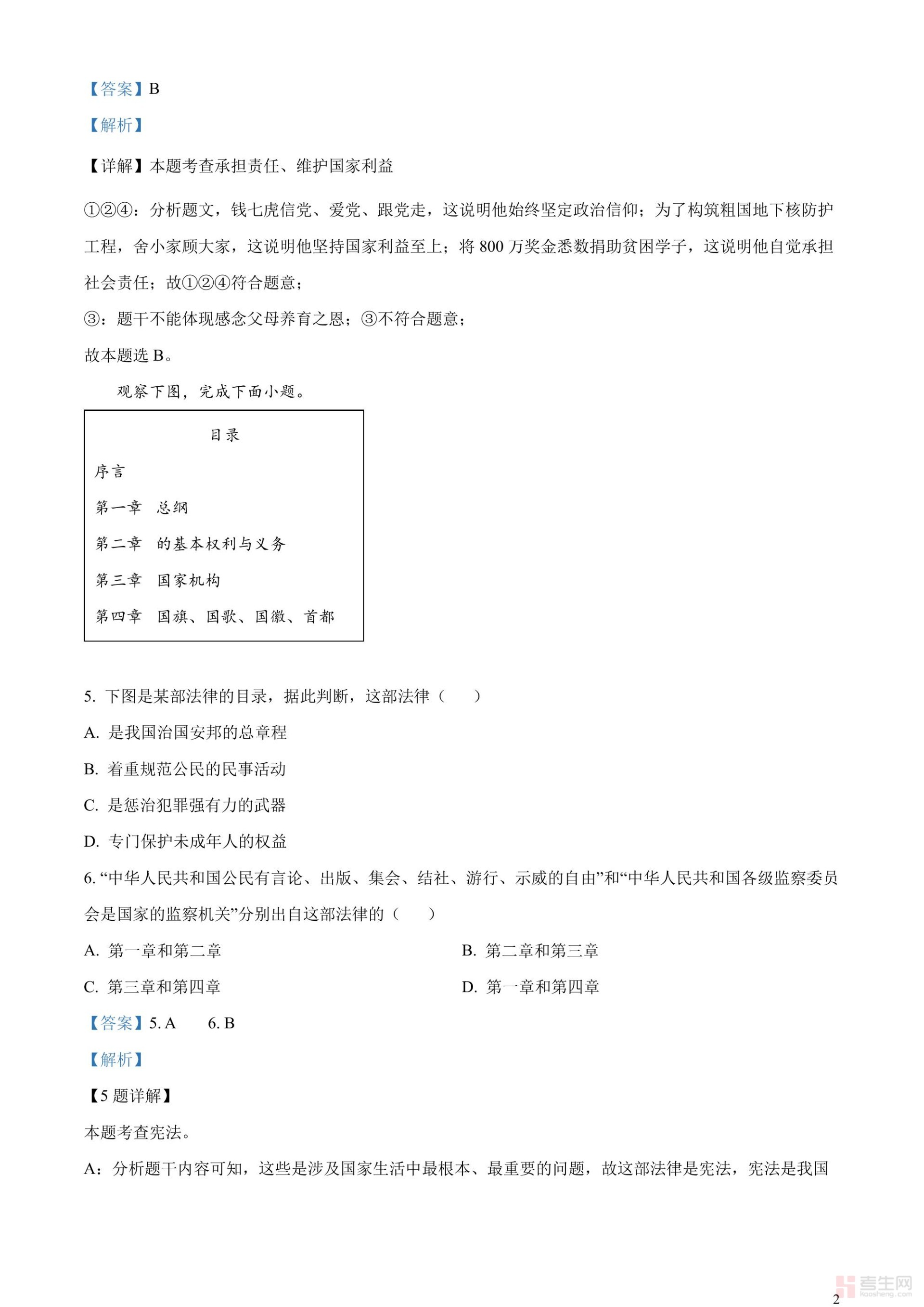 2023年贵州省黔东南苗族侗族自治州中考道德与法治真题(解析版)