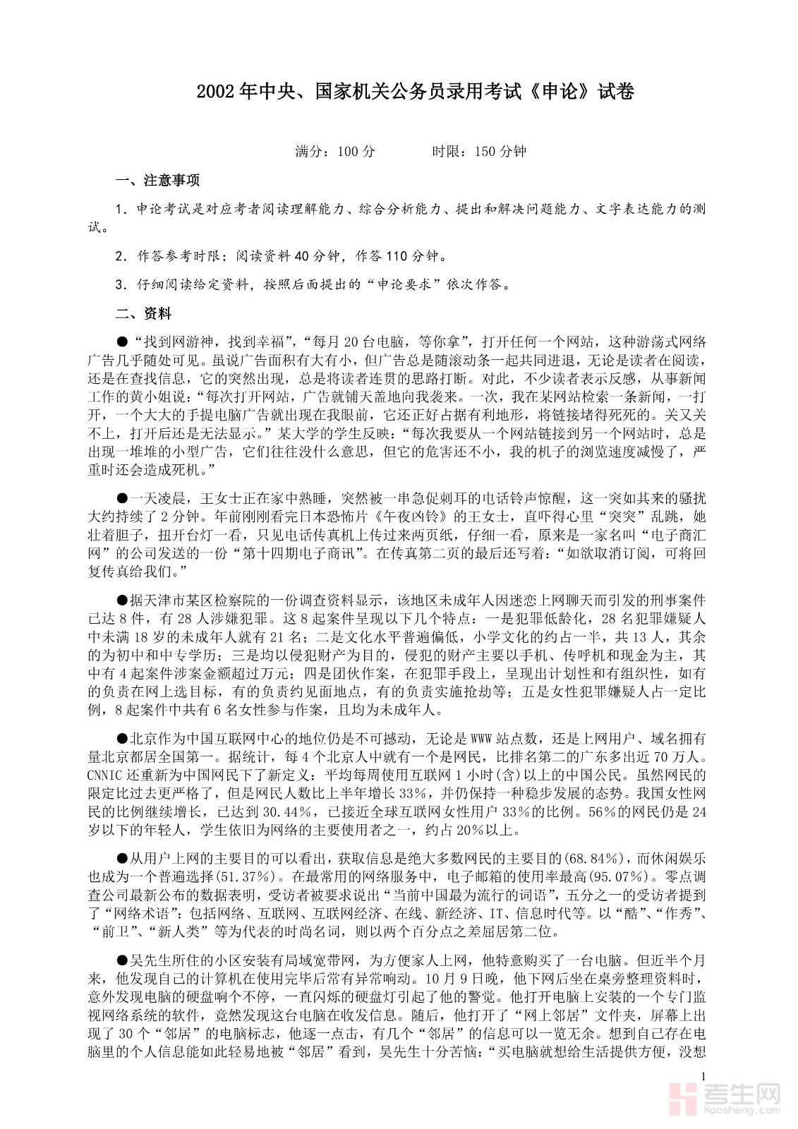 2018年国家录用公务员考试《申论》真题卷及答案(副省级)