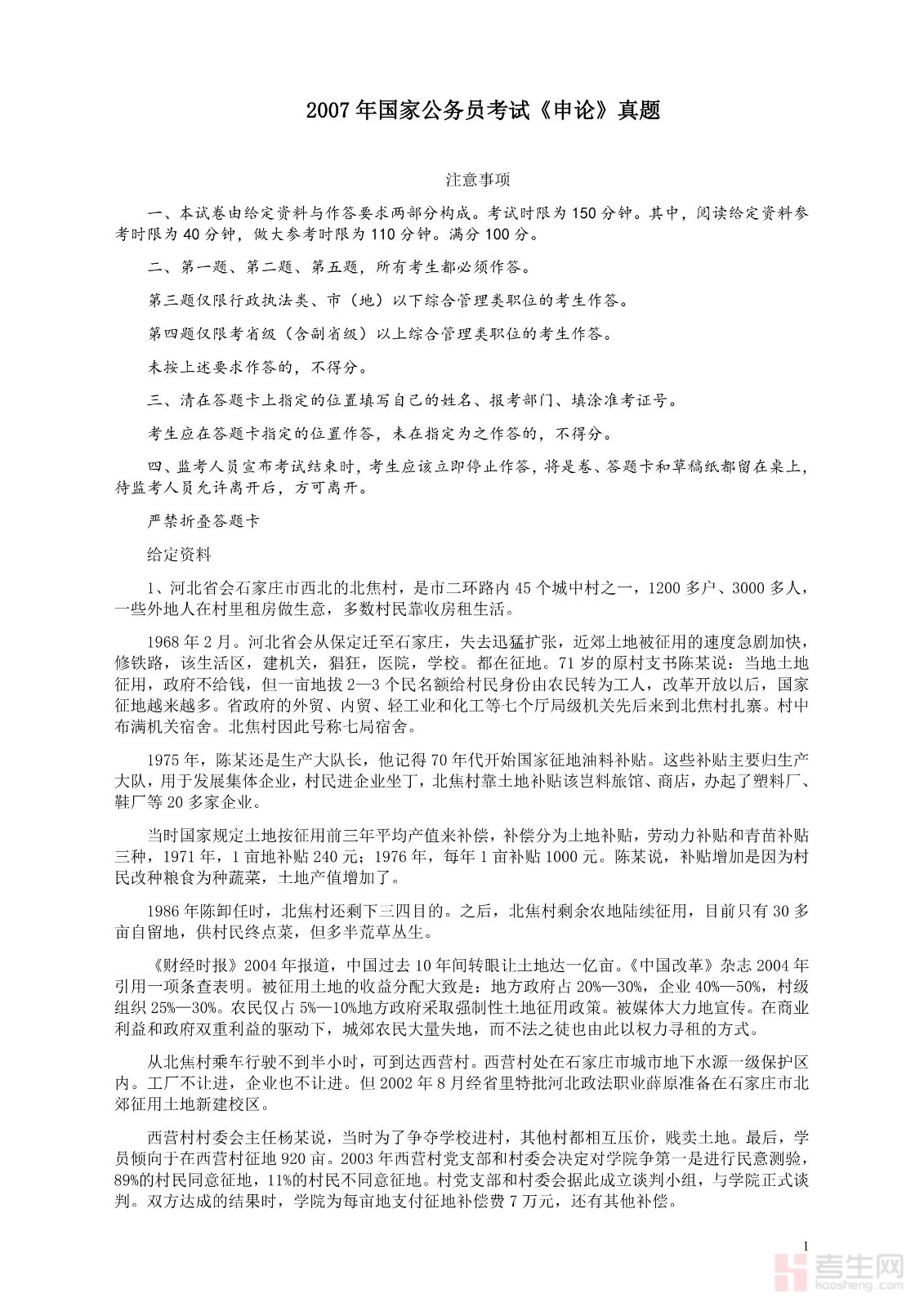 2024国考申论试题-地市级+副省级+行政执法(完整版+参考答案)