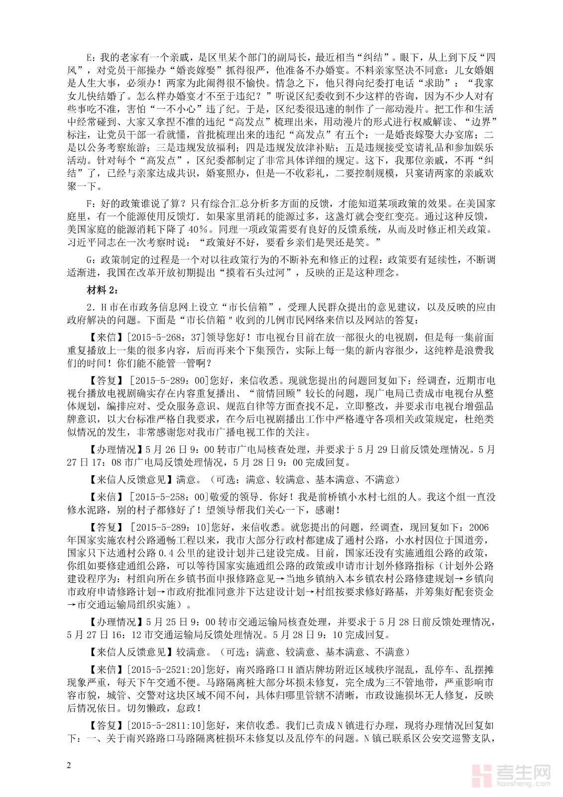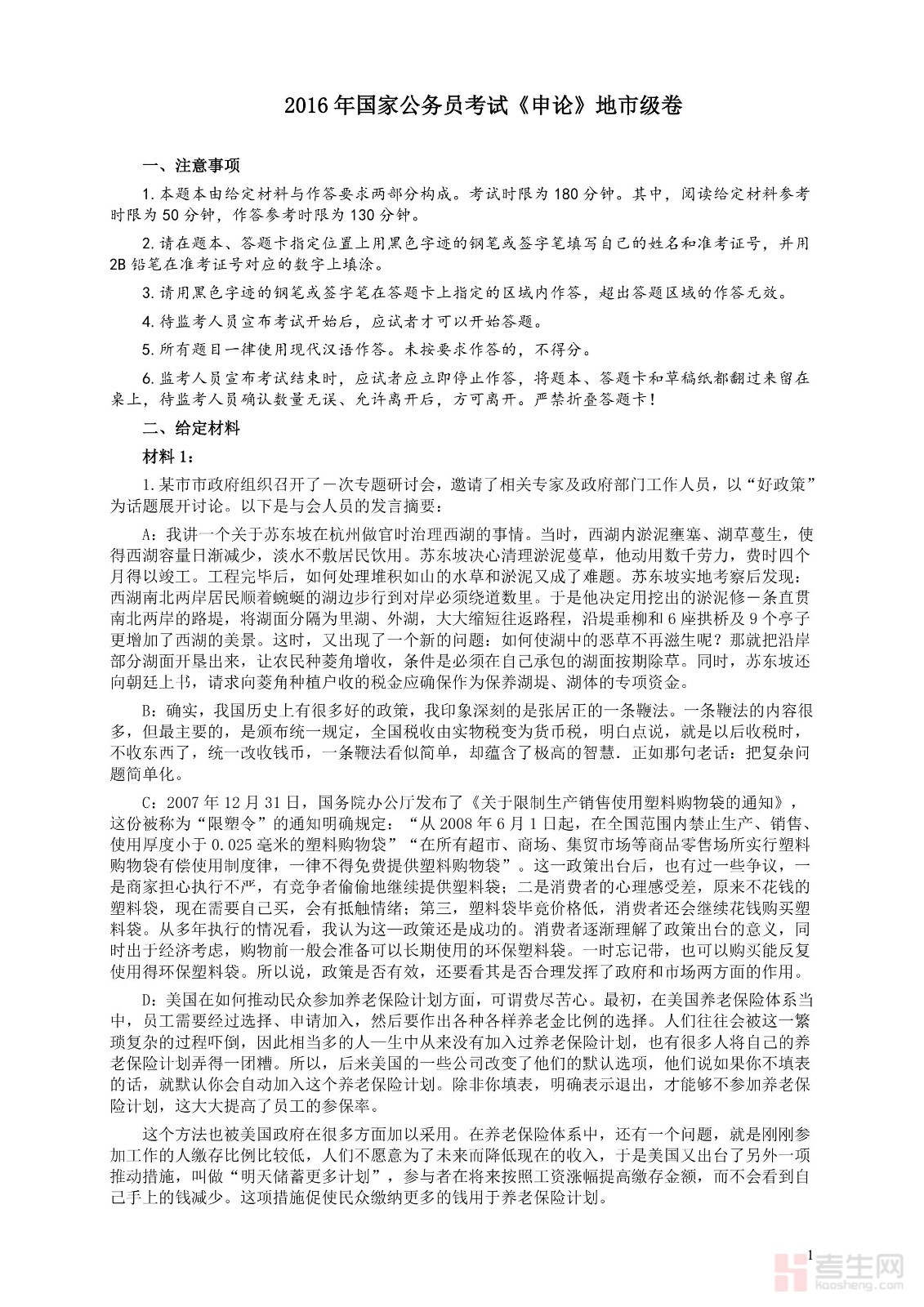 2016年国家录用公务员考试《申论》真题卷及答案(地市级)
