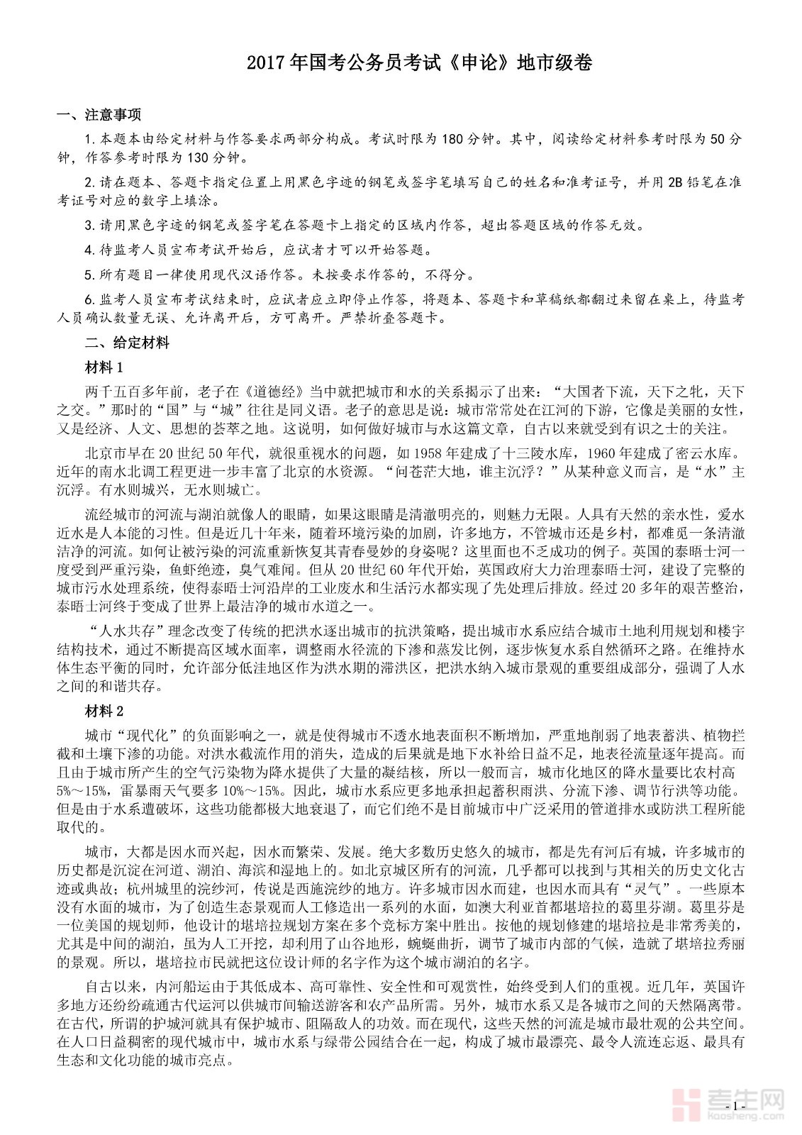 2017年国家录用公务员考试《申论》真题卷及答案(地市级)(含解析共20面)