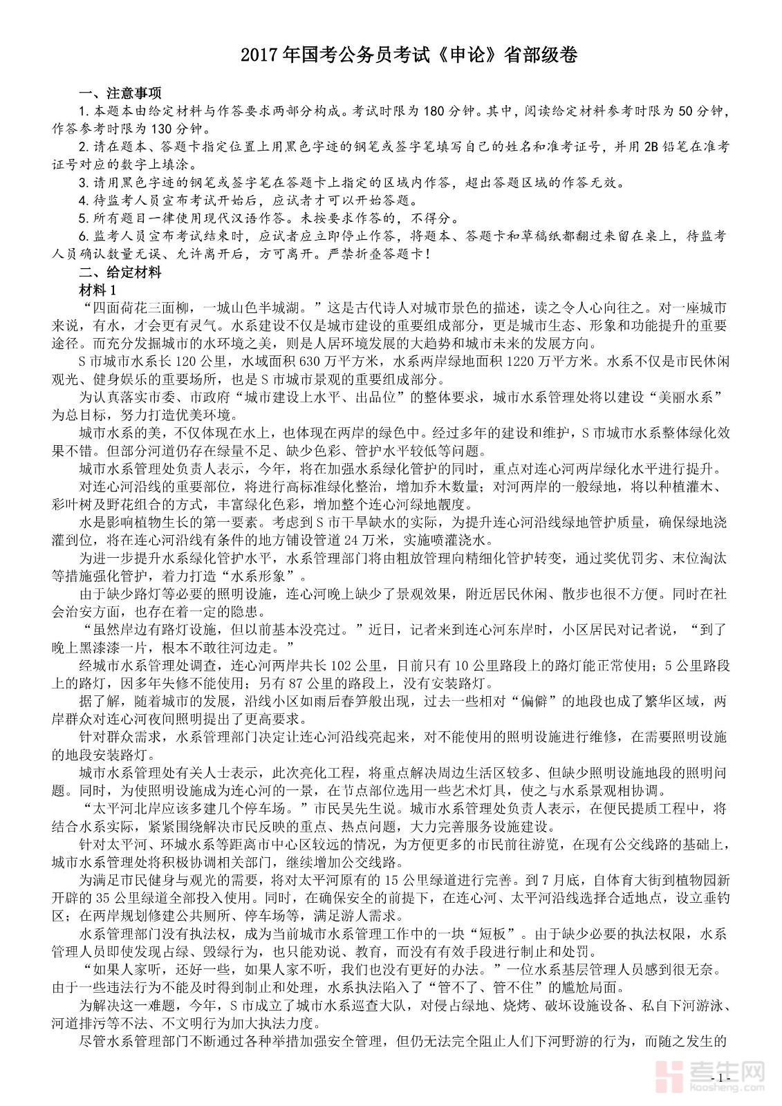 2017年国家录用公务员考试《申论》真题卷及答案(省级)(含解析共20面)