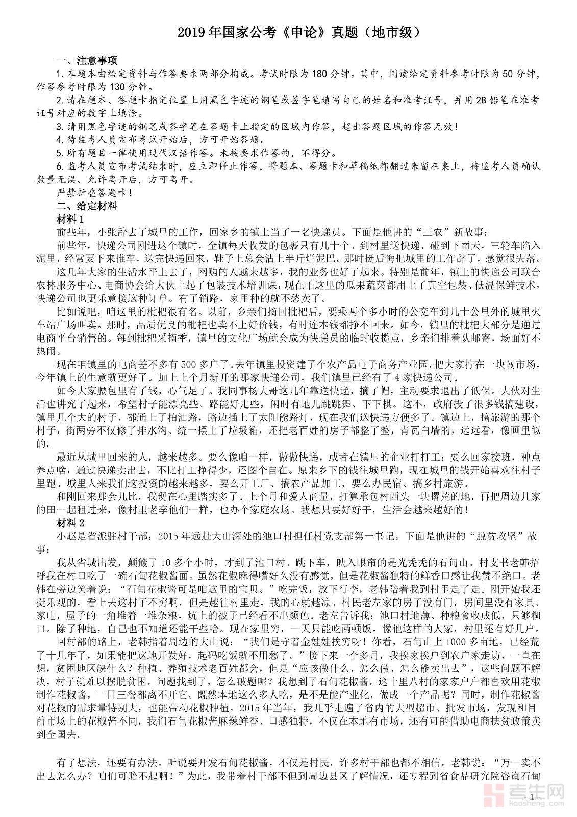 2024国考申论试题-地市级+副省级+行政执法(完整版+参考答案)