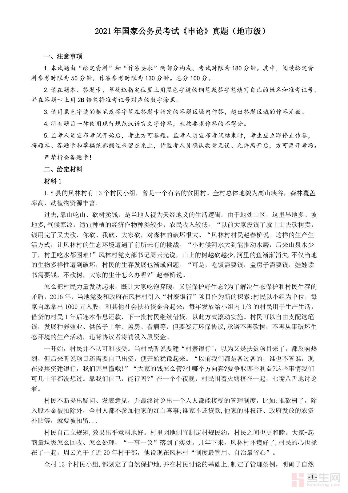 2021年国家公务员考试《申论》真题(地市级)及参考答案(两套答案)